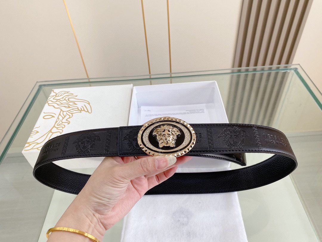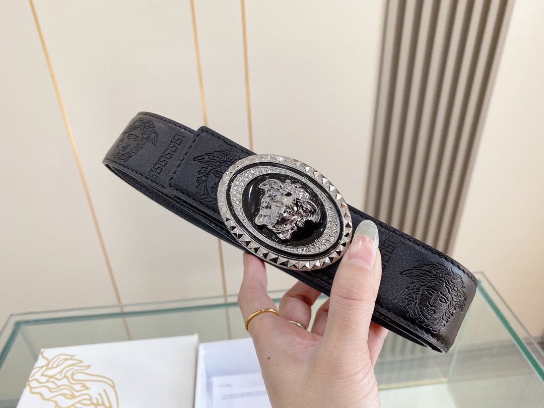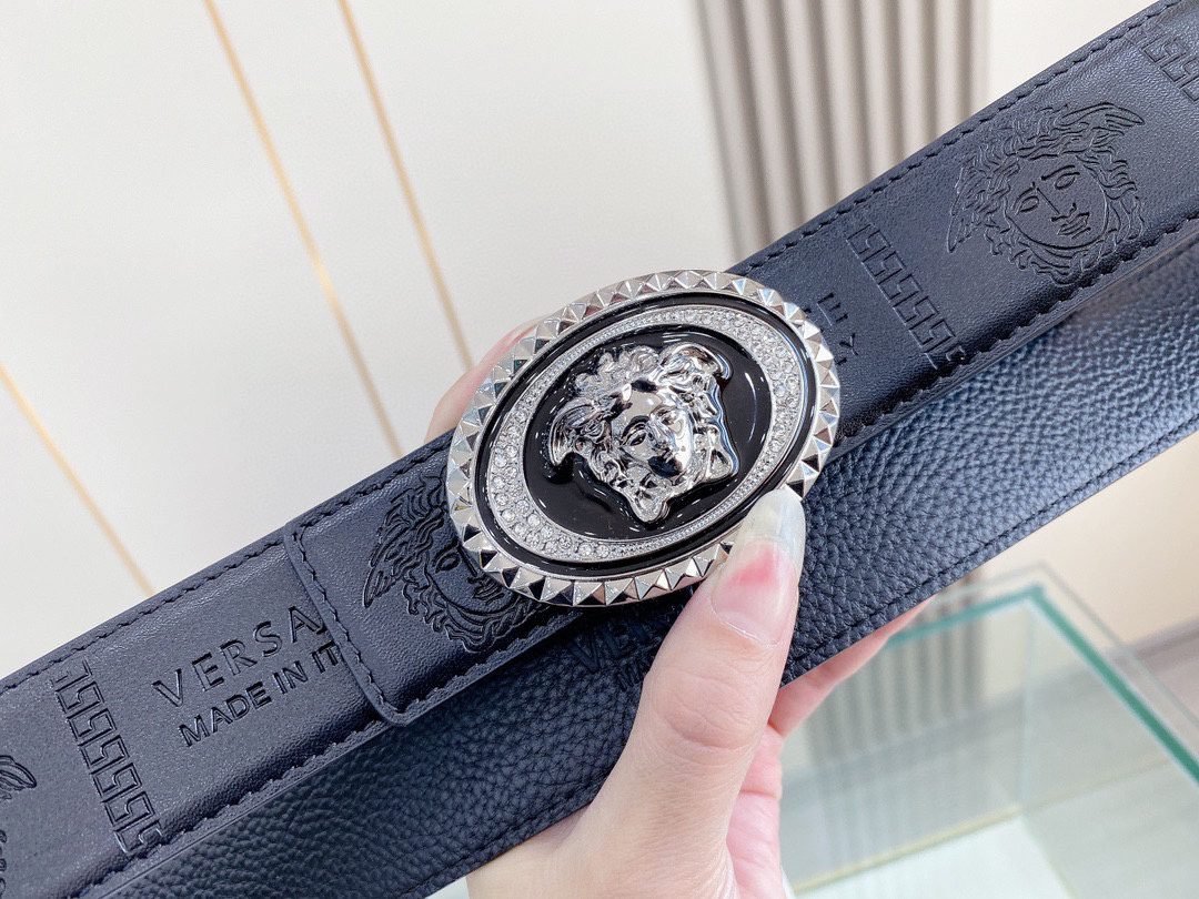 Home Belt VERSACE Belt Versace Classic Circular Buckle Black Texture Belt Simple, Fashionable, Noble, Luxury