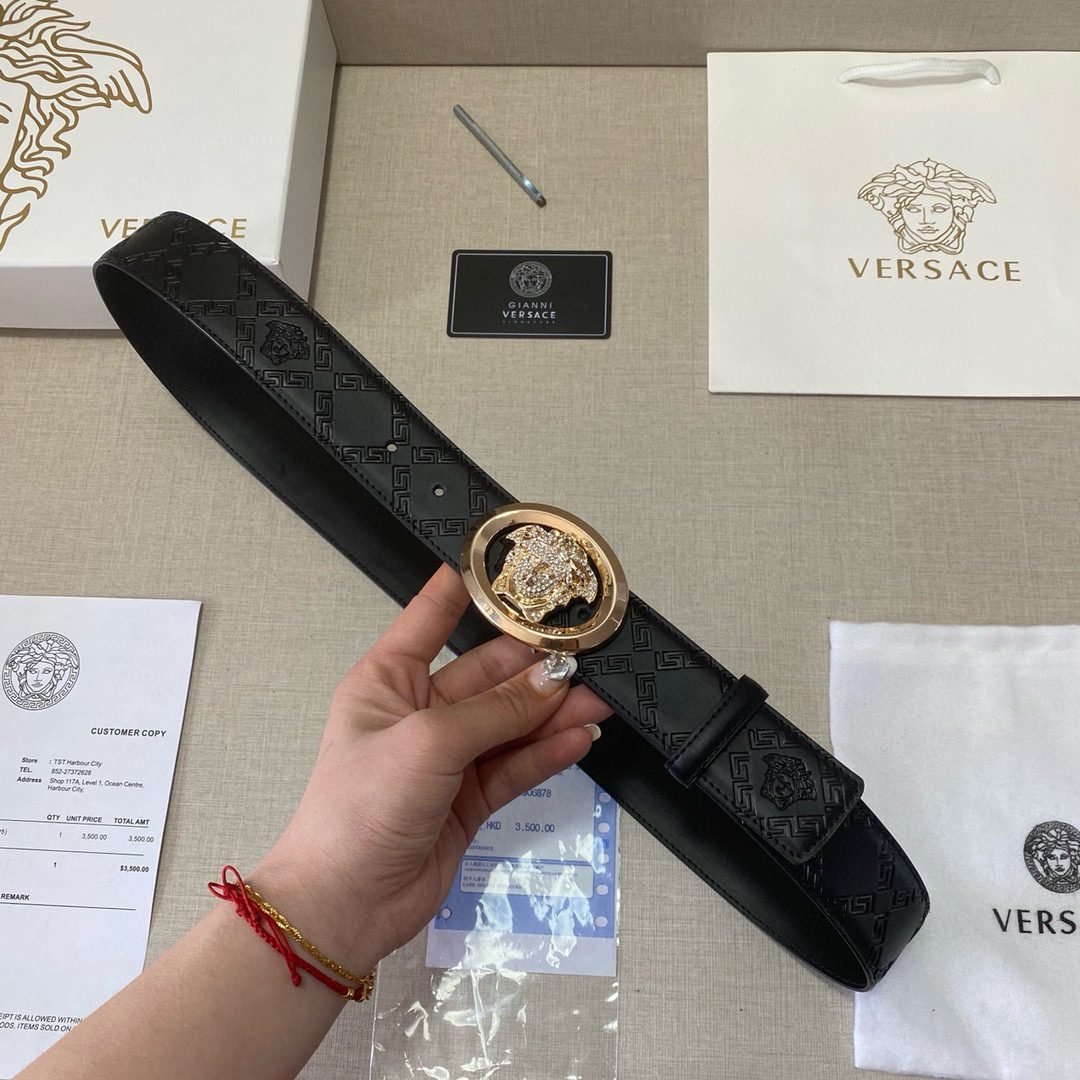 2. Classic design: The belt buckle is engraved with the “VERACE” logo, showcasing the brand’s unique charm.