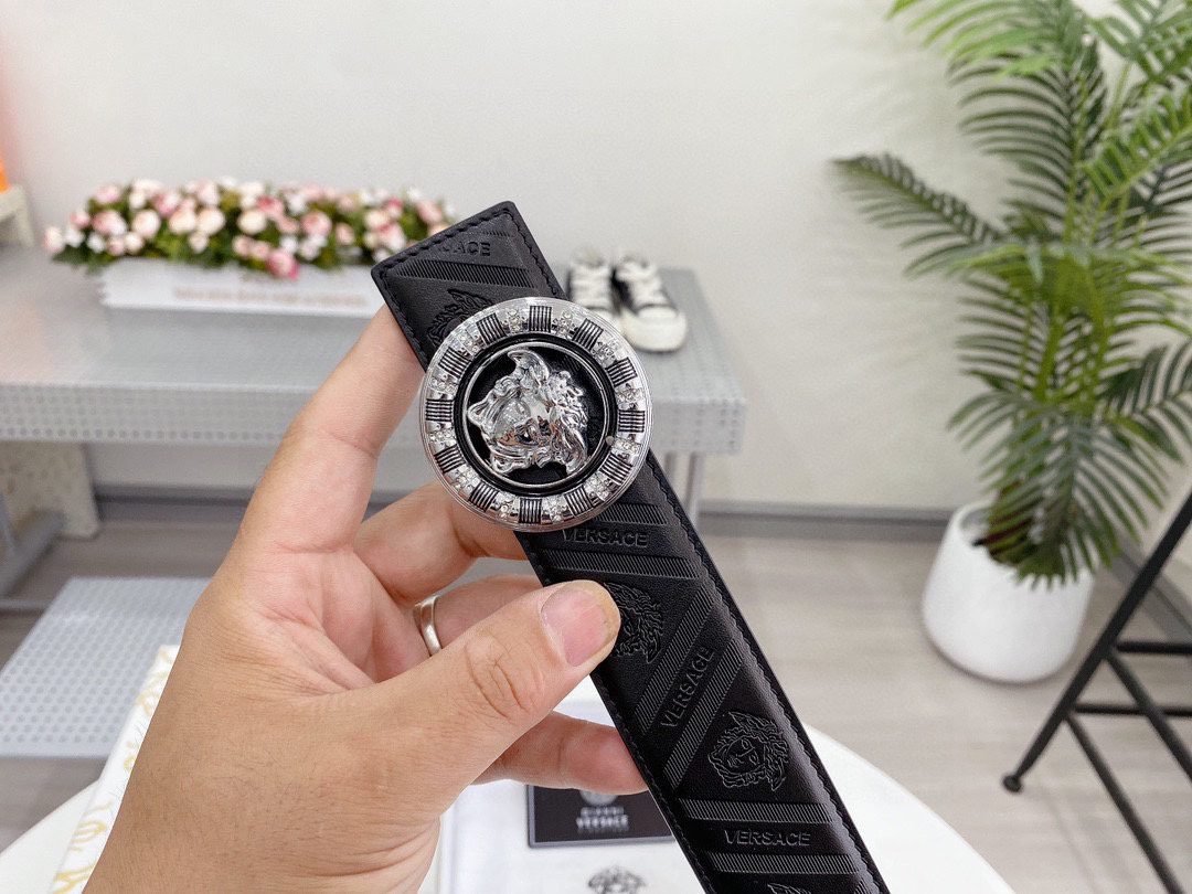 Home Belt VERSACE Belt Versace Classic Circular Buckle Black Texture Belt Simple, Grand, Noble, and Elegant