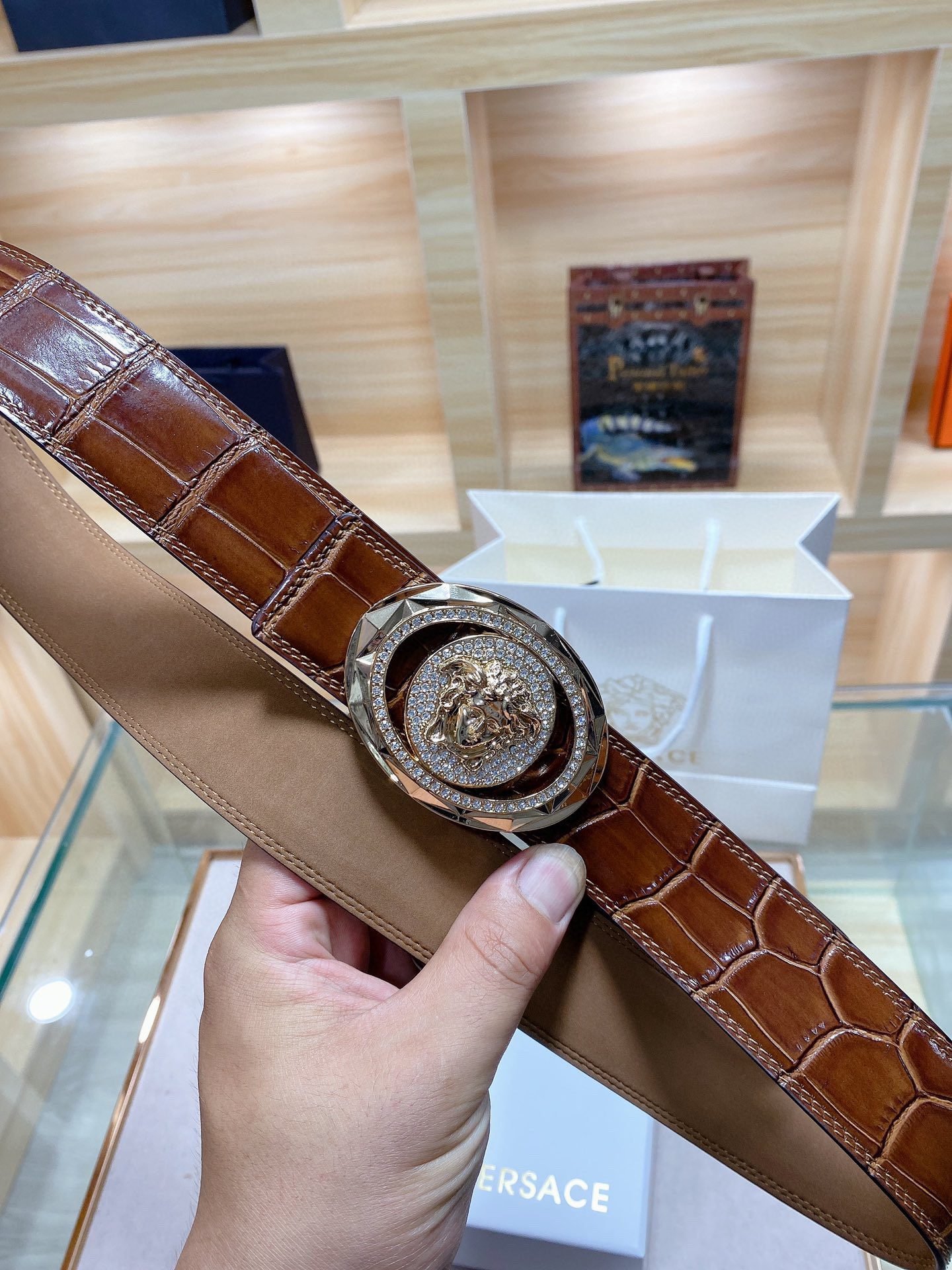 Home Belt VERSACE Belt Versace Classic Circular Buckle Crocodile Pattern Belt, Simple and Elegant, Classic and Fashionable