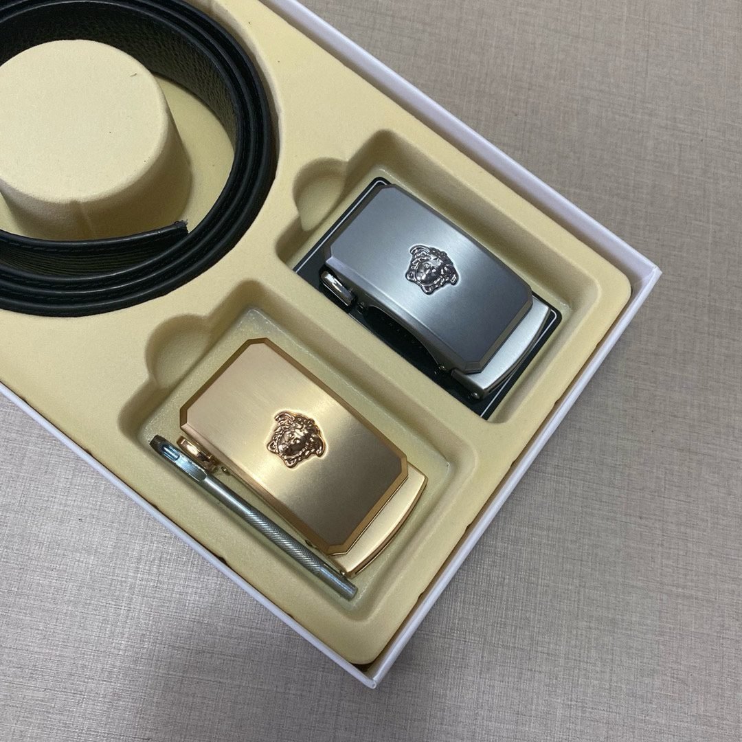 Versace Classic Double Button Belt Gift Box Set, High end Fashion, Noble and Elegant