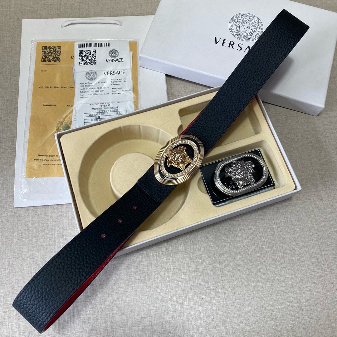 Home Belt VERSACE Belt Versace Classic Double Button Belt Gift Box Set, High end Fashion, Noble and Elegant