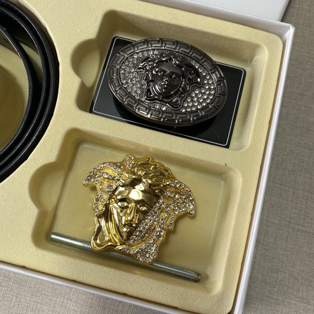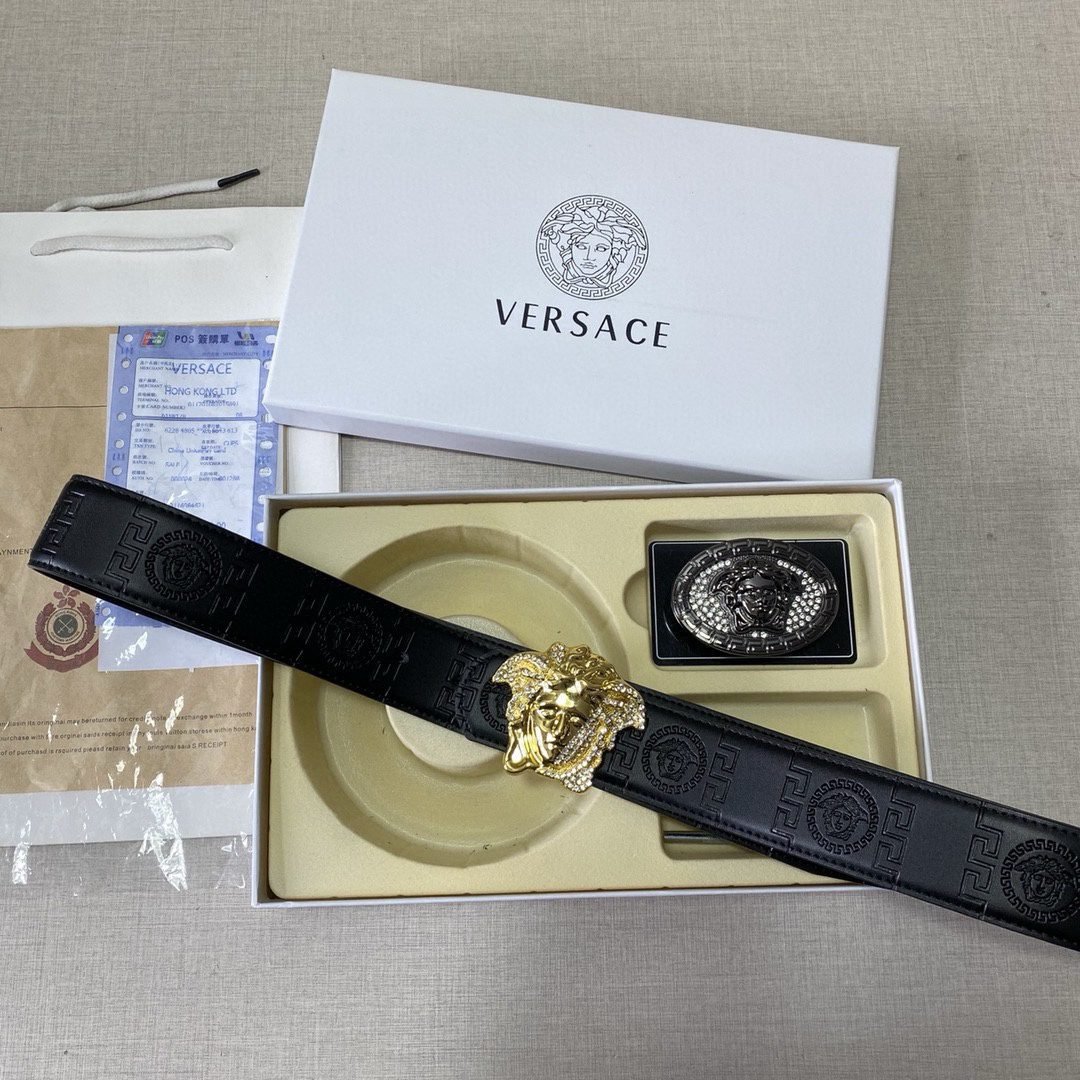 Home Belt VERSACE Belt Versace Classic Double Button Belt Gift Box Set, High end Fashion, Noble and Elegant