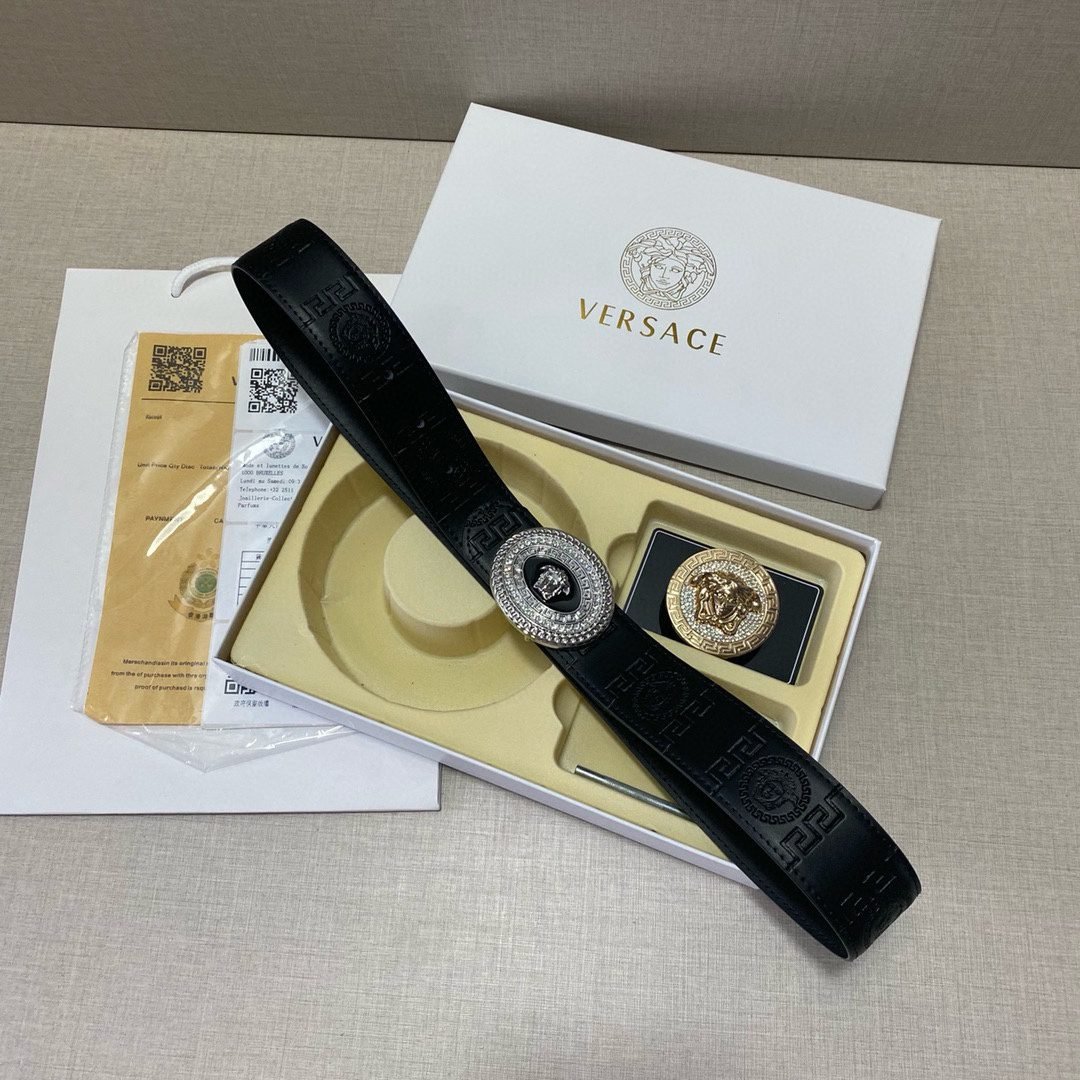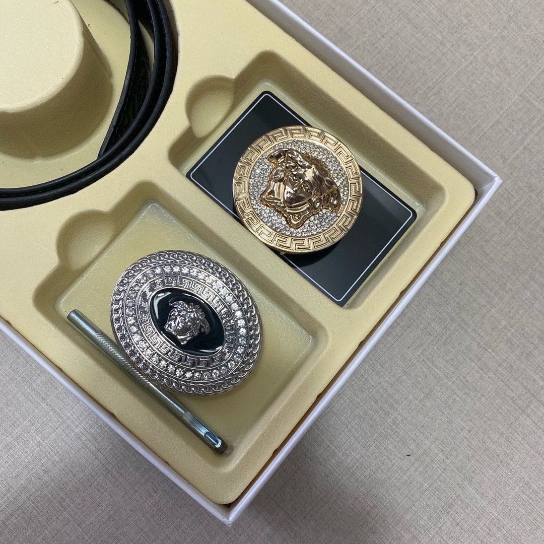 Versace Classic Double Button Round Buckle Belt Gift Box Set, High end Fashion, Noble and Elegant