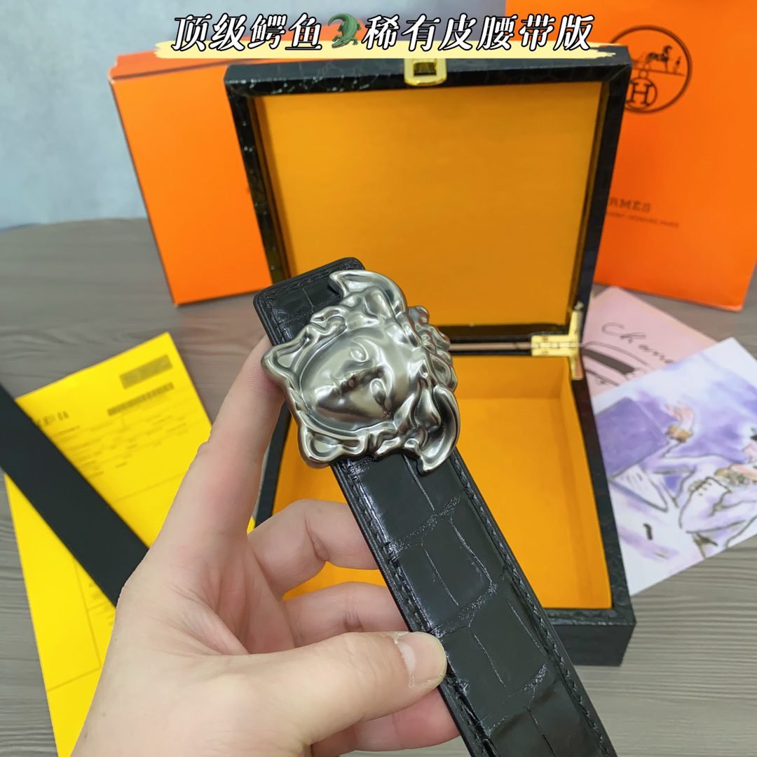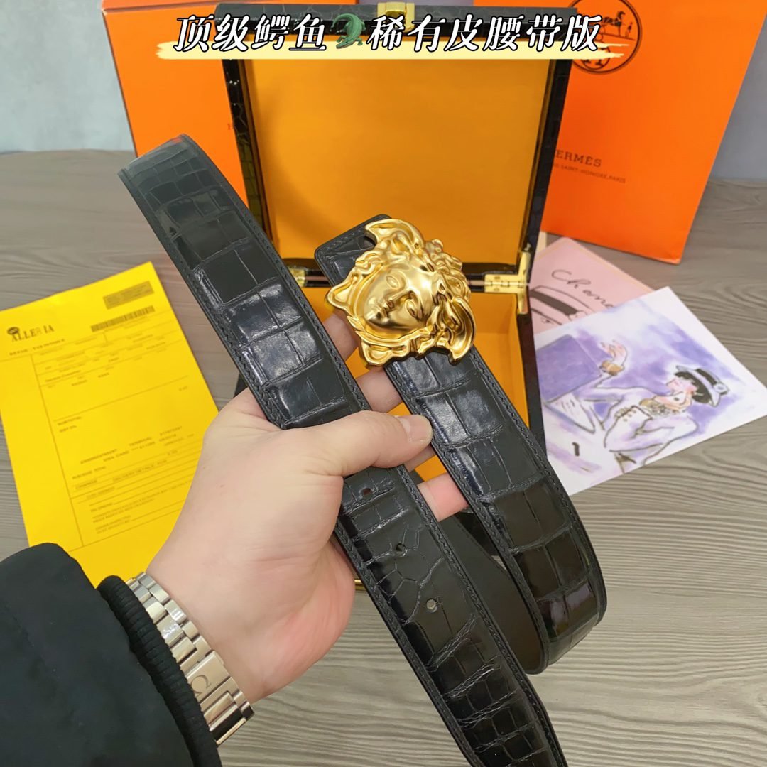 Versace Classic Medusa Relief Buckle Black Belt Classic Fashion Exquisite Elegance