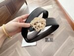 Versace Classic Medusa Relief Ring Buckle Black Belt Classic Fashion Noble Elegance