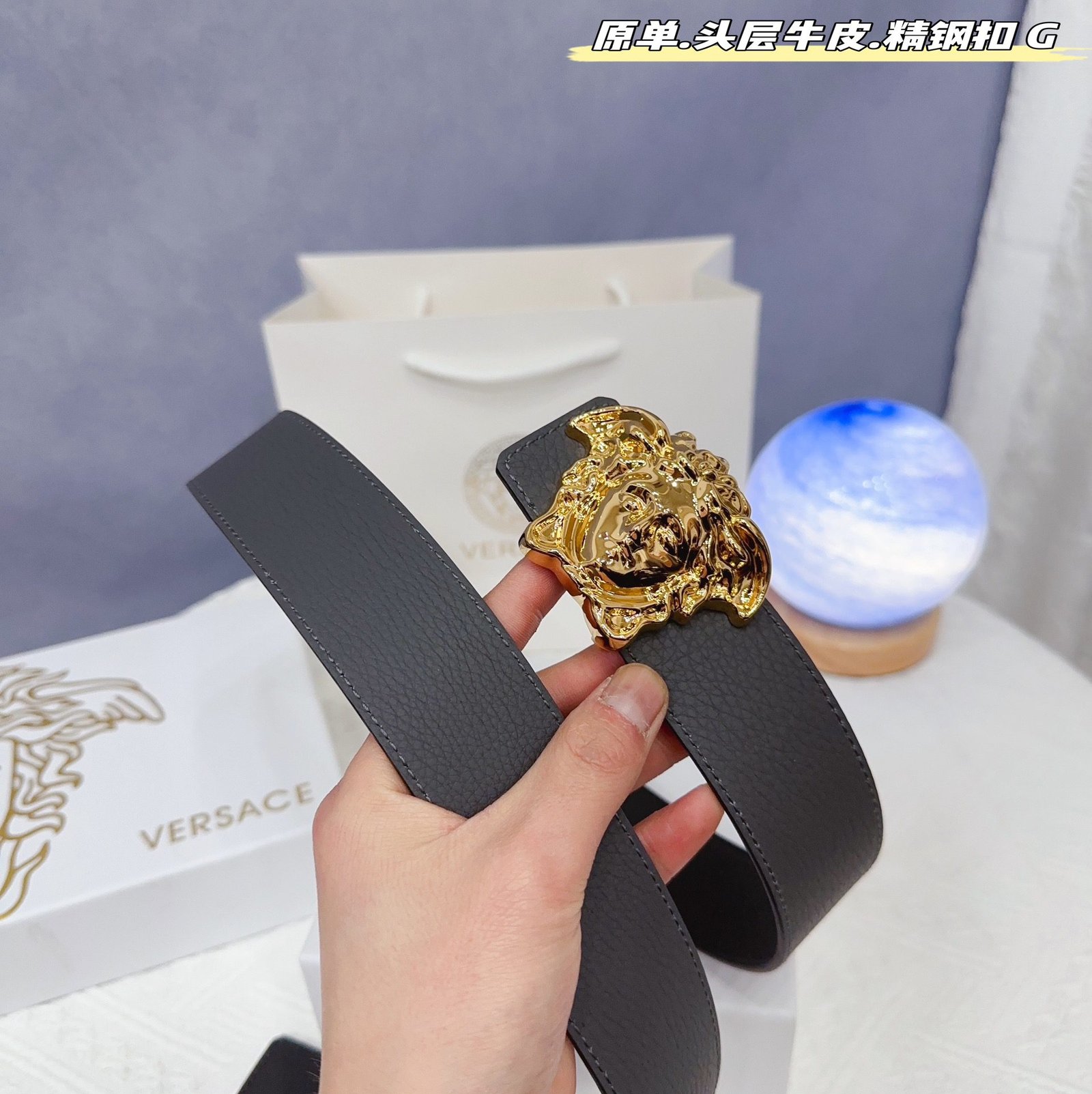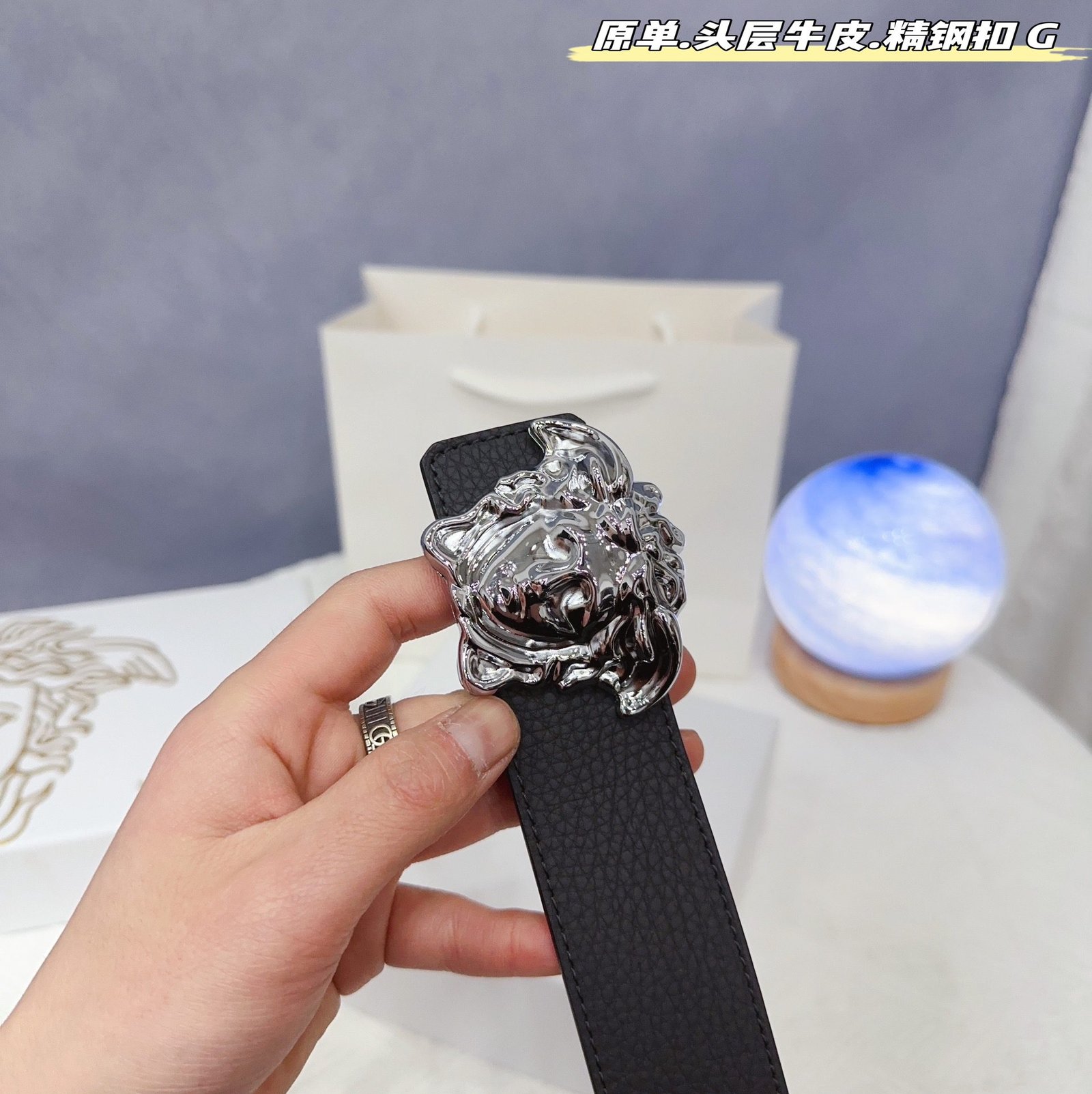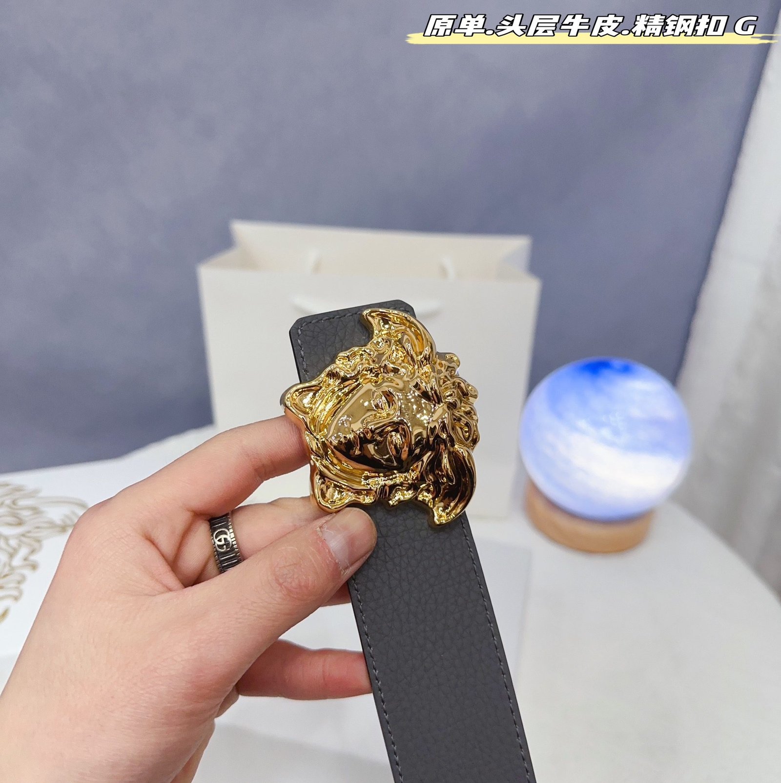 Home Belt VERSACE Belt Versace Classic Medusa Relief Ring Buckle Black Belt Classic Fashion Noble Elegance