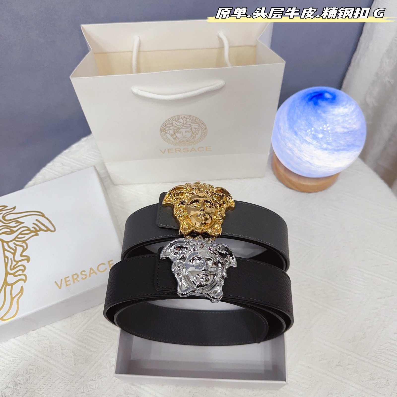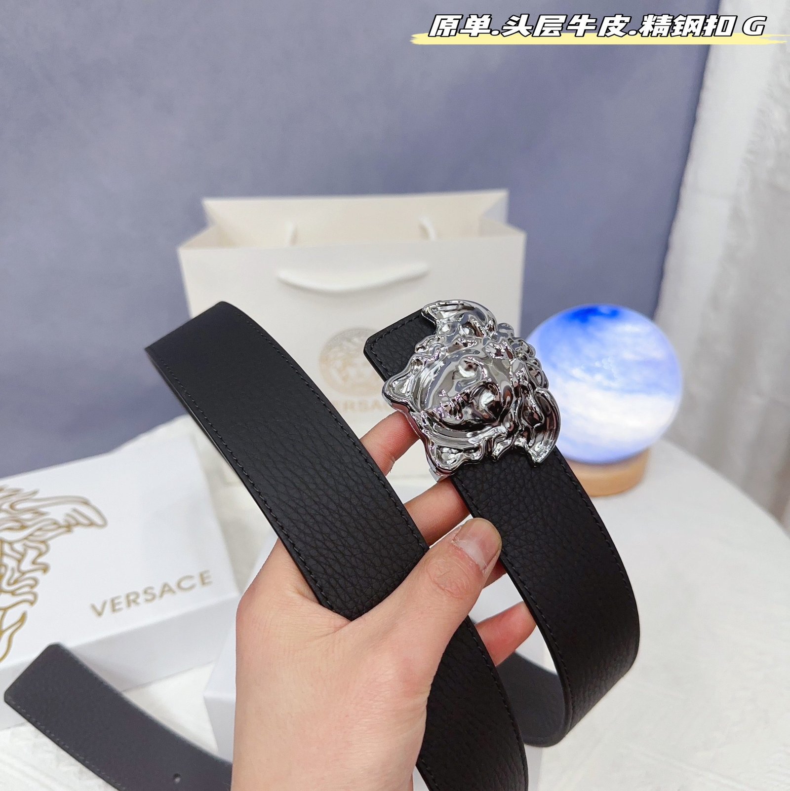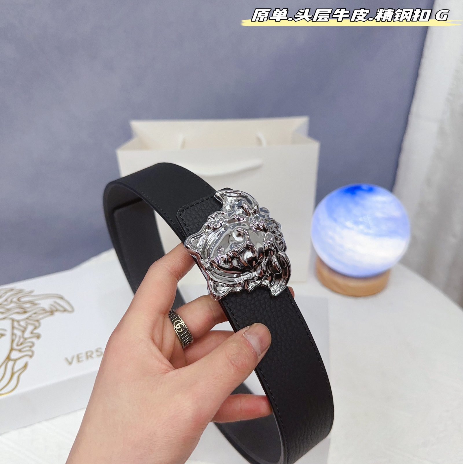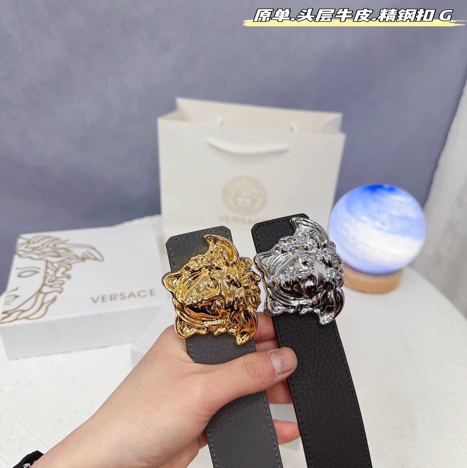 Home Belt VERSACE Belt Versace Classic Medusa Relief Ring Buckle Black Belt Classic Fashion Noble Elegance