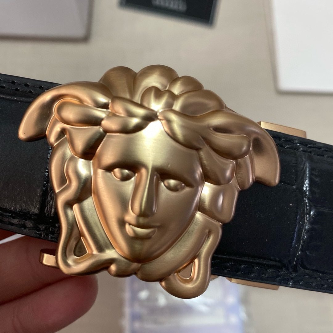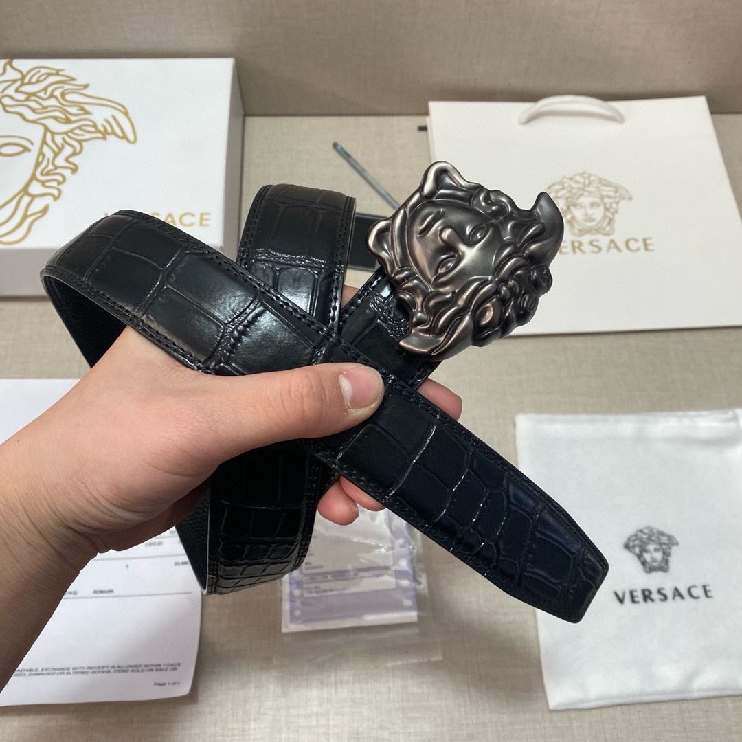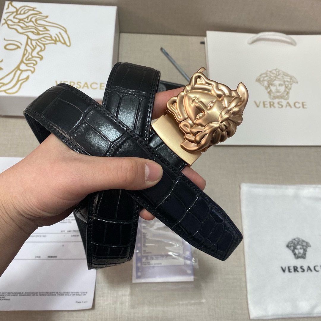 Home Belt VERSACE Belt Versace Classic Medusa Relief Ring Buckle Black Crocodile Pattern Belt Simple and Elegant, Low key Luxury