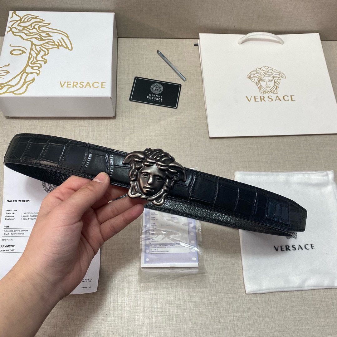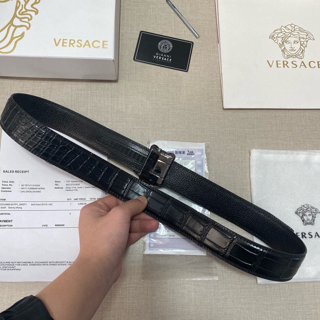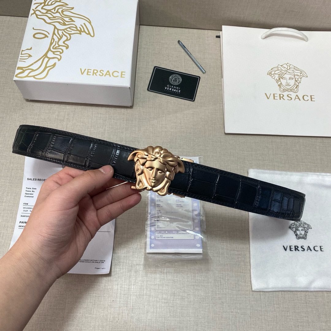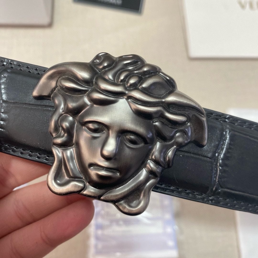 Home Belt VERSACE Belt Versace Classic Medusa Relief Ring Buckle Black Crocodile Pattern Belt Simple and Elegant, Low key Luxury