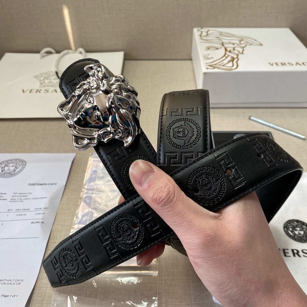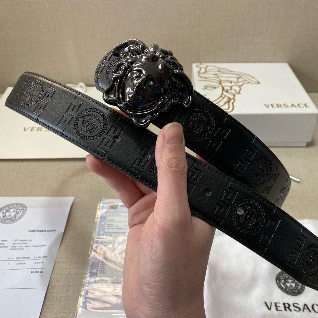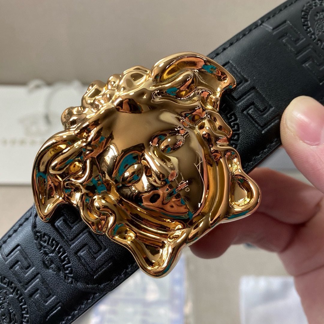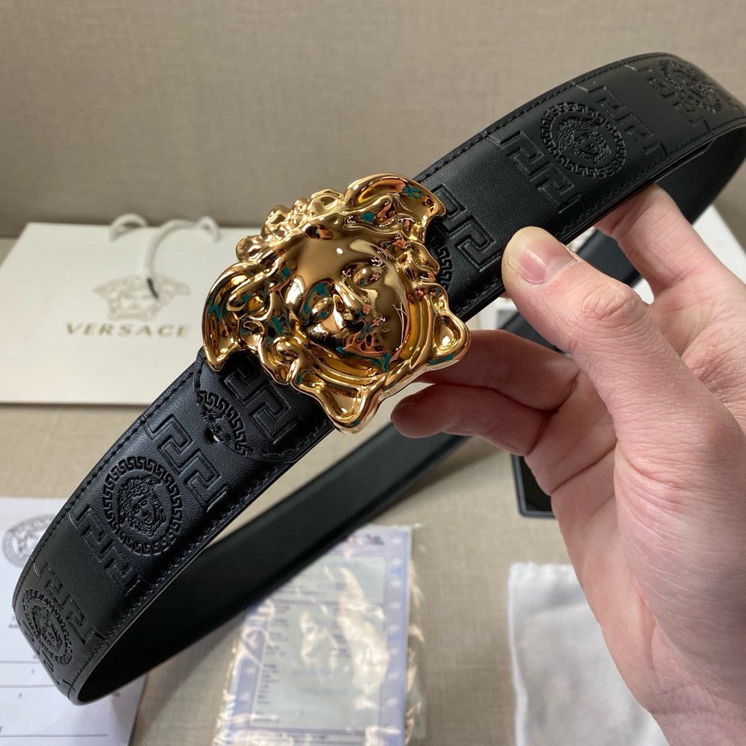 Home Belt VERSACE Belt Versace Classic Medusa Relief Ring Buckle Black Texture Belt Classic Fashion Noble Elegance