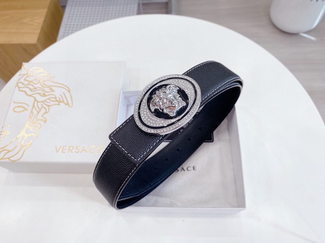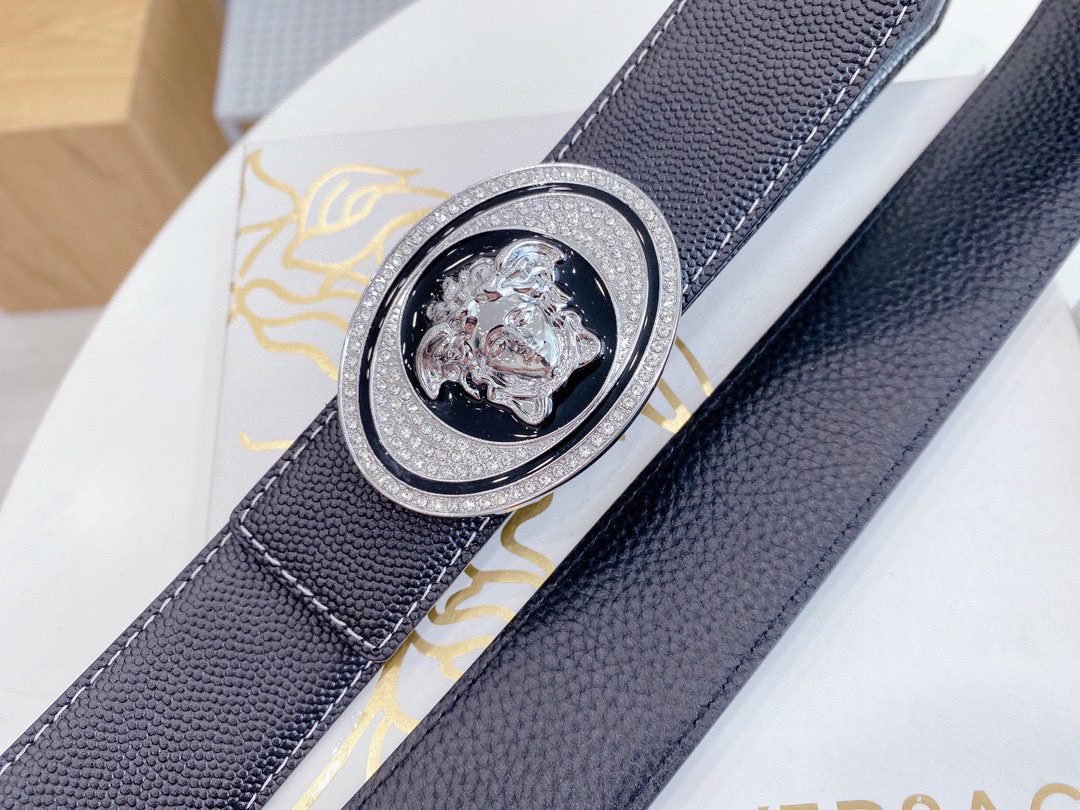 Versace Classic Round Buckle Black Belt Classic Fashion Exquisite Elegance