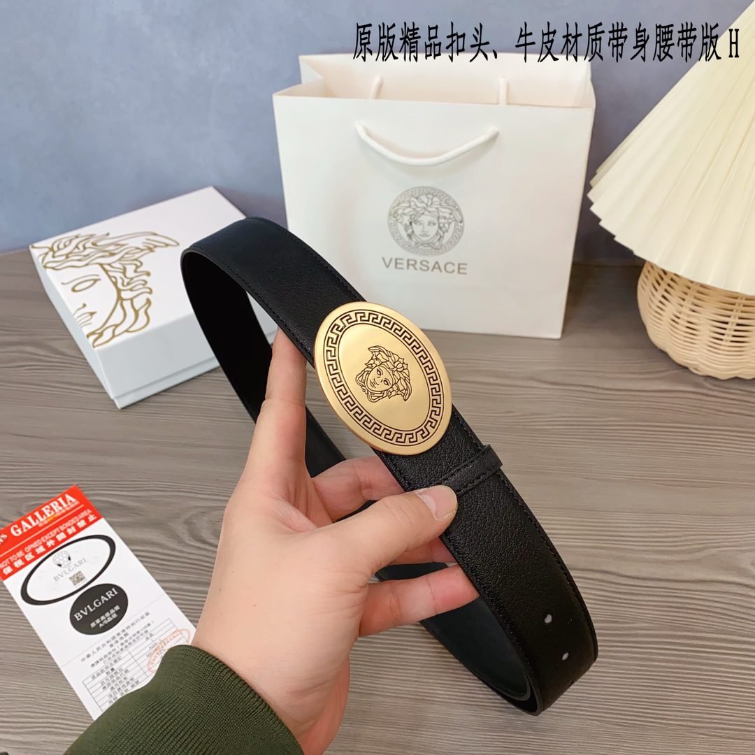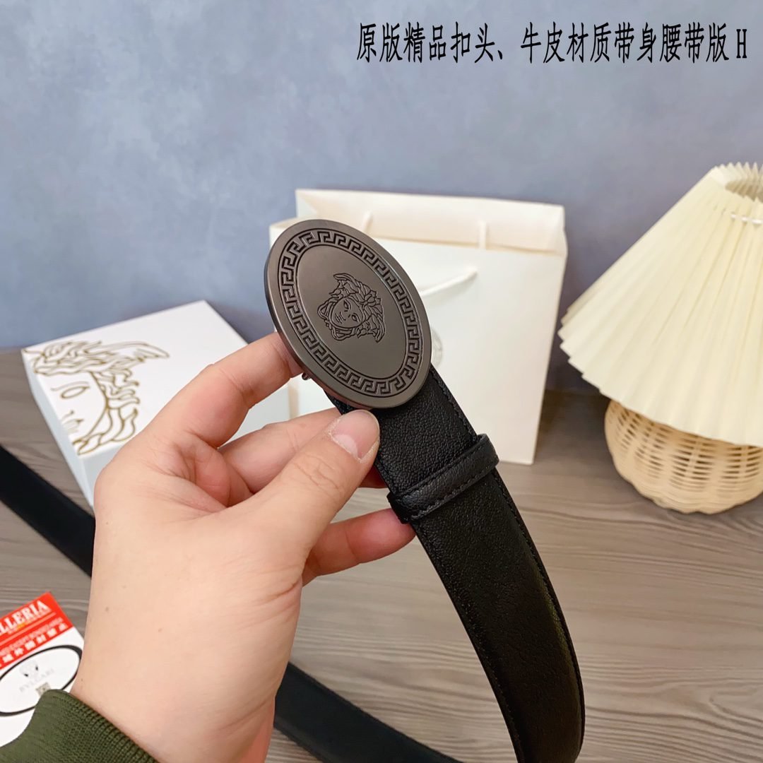 Home Belt VERSACE Belt Versace Classic Round Buckle Black Belt Simple, Elegant, Exquisite, and Elegant