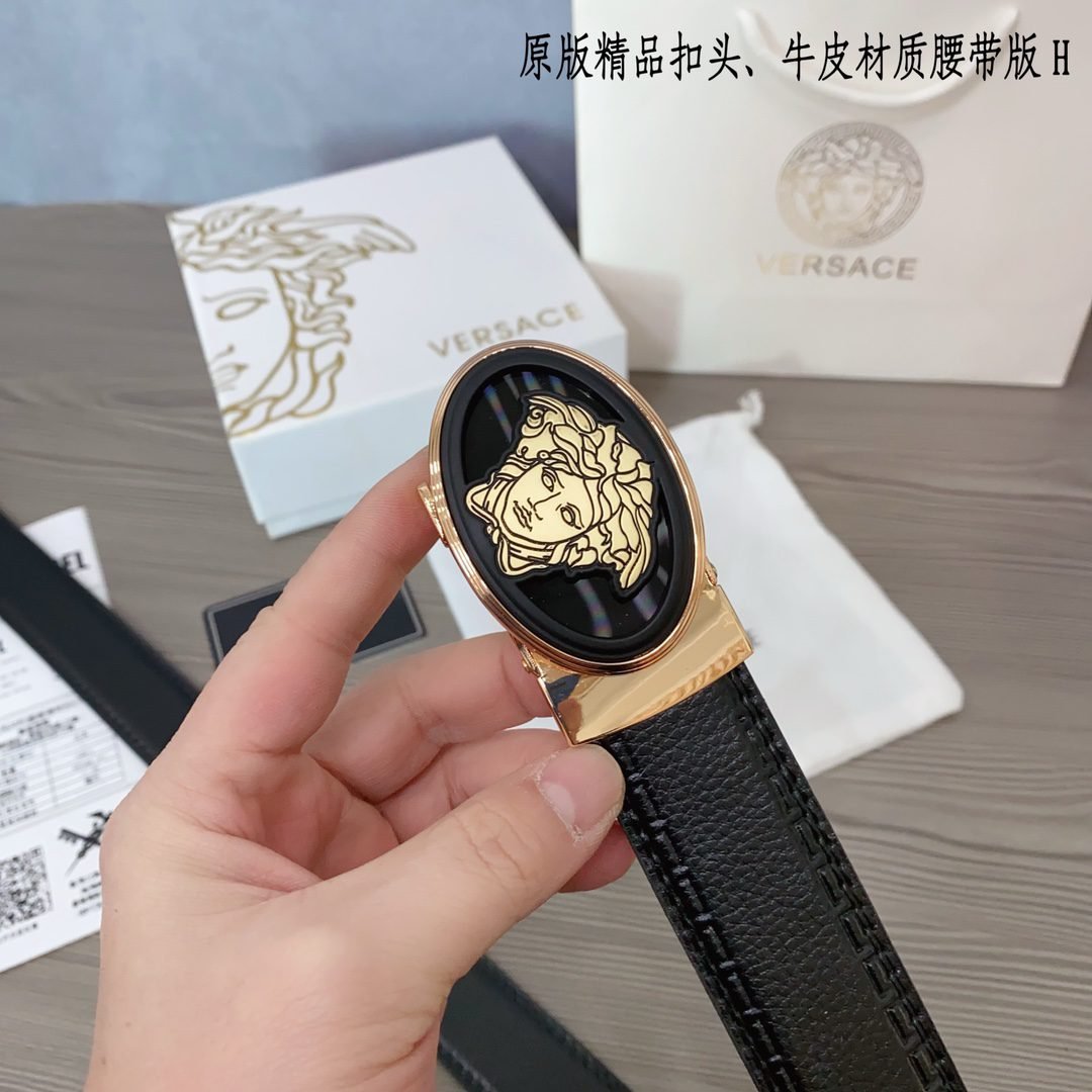 Home Belt VERSACE Belt Versace Classic Round Buckle Black Belt Simple, Grand, Noble, Elegant