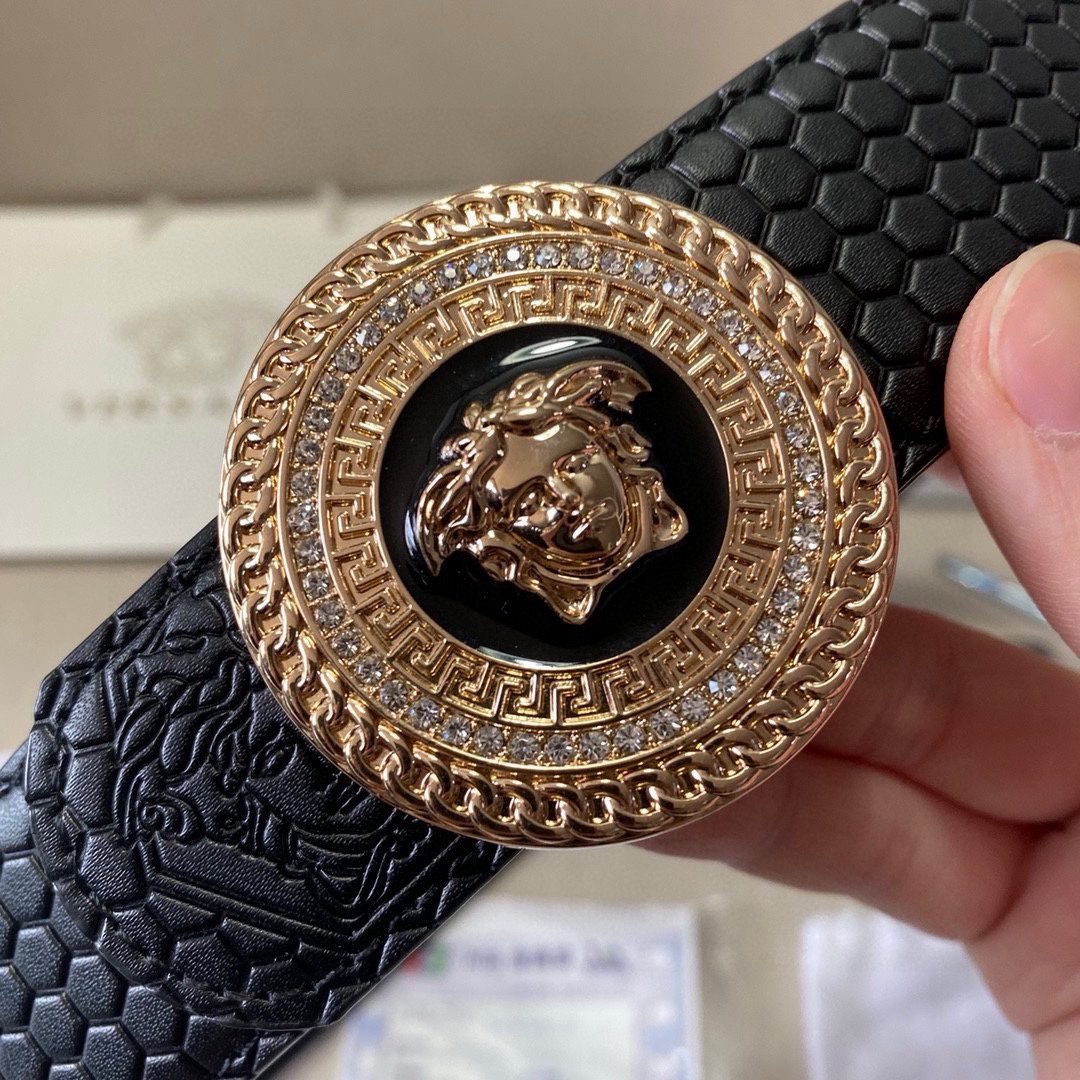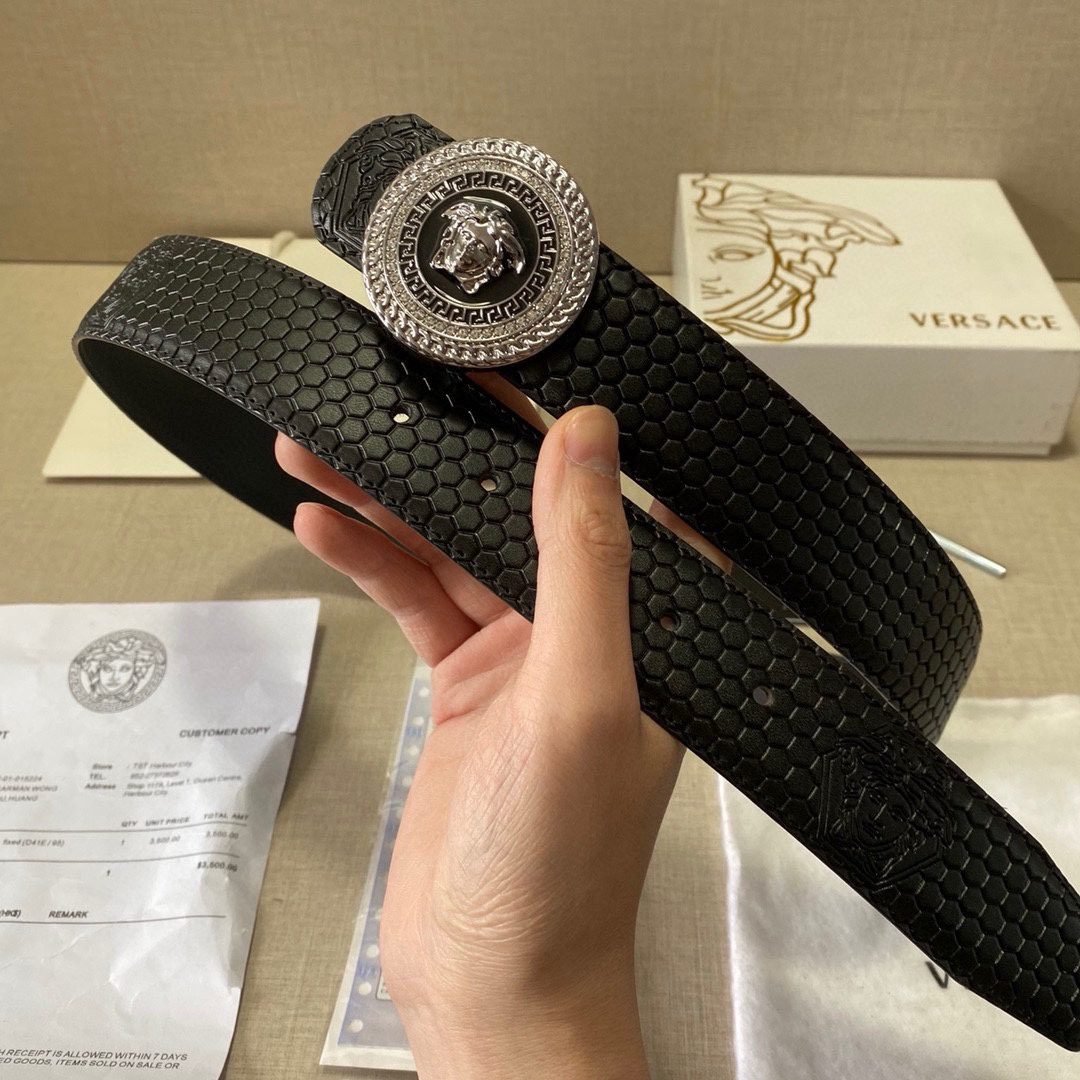 Home Belt VERSACE Belt Versace Classic Round Loop Buckle Black Plaid Belt Simple and Elegant Classic Fashion