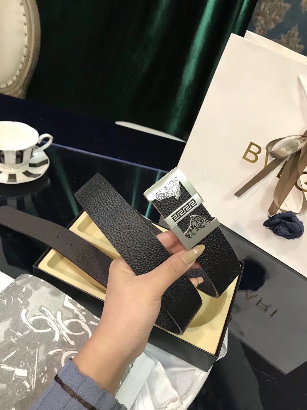 Versace Classic Double Button Belt Gift Box Set, High end Fashion, Noble and Elegant $210.00 Original price was: $210.00.$66.69Current price is: $66.69.