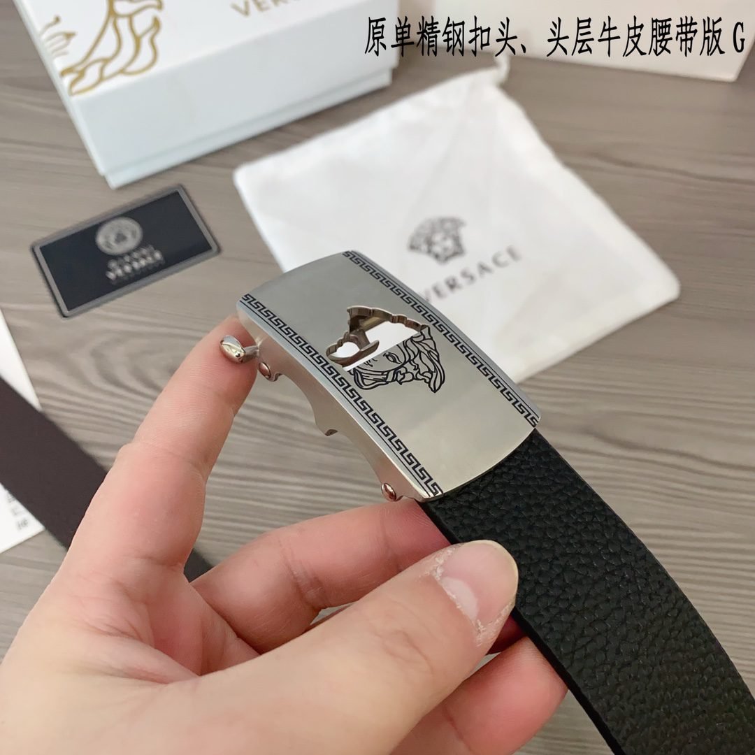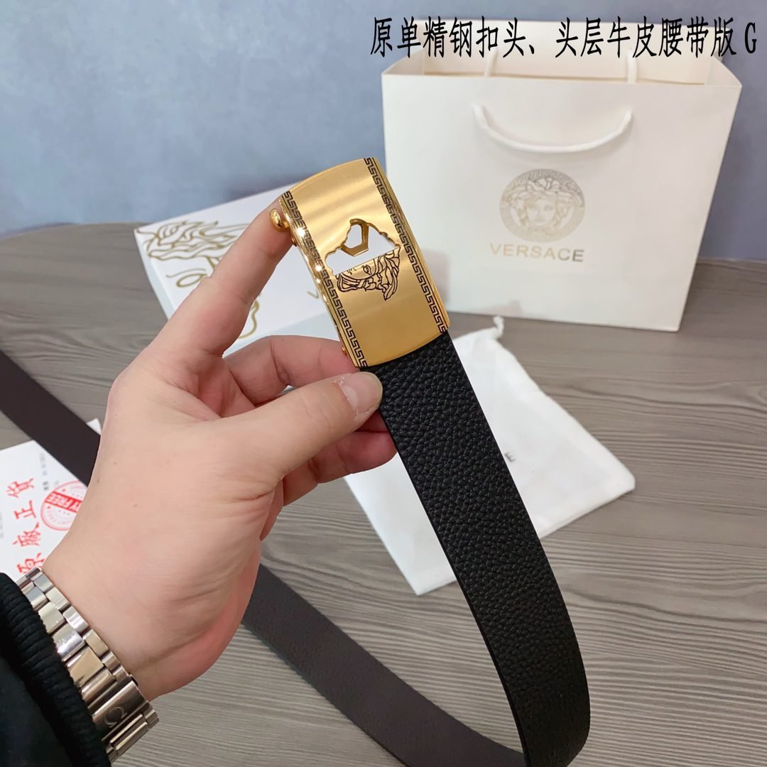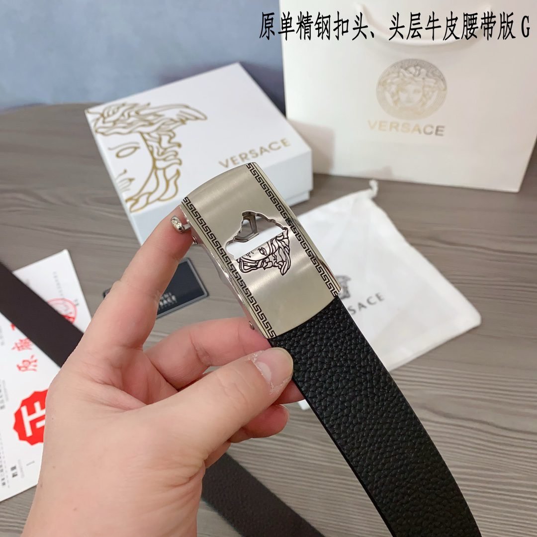 Home Belt VERSACE Belt Versace Classic Square Buckle Black Belt Simple and Elegant, Low key Luxury