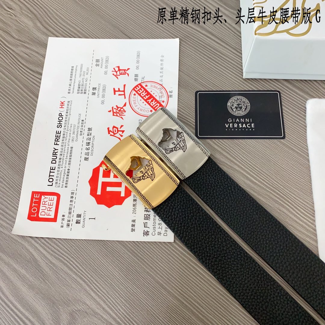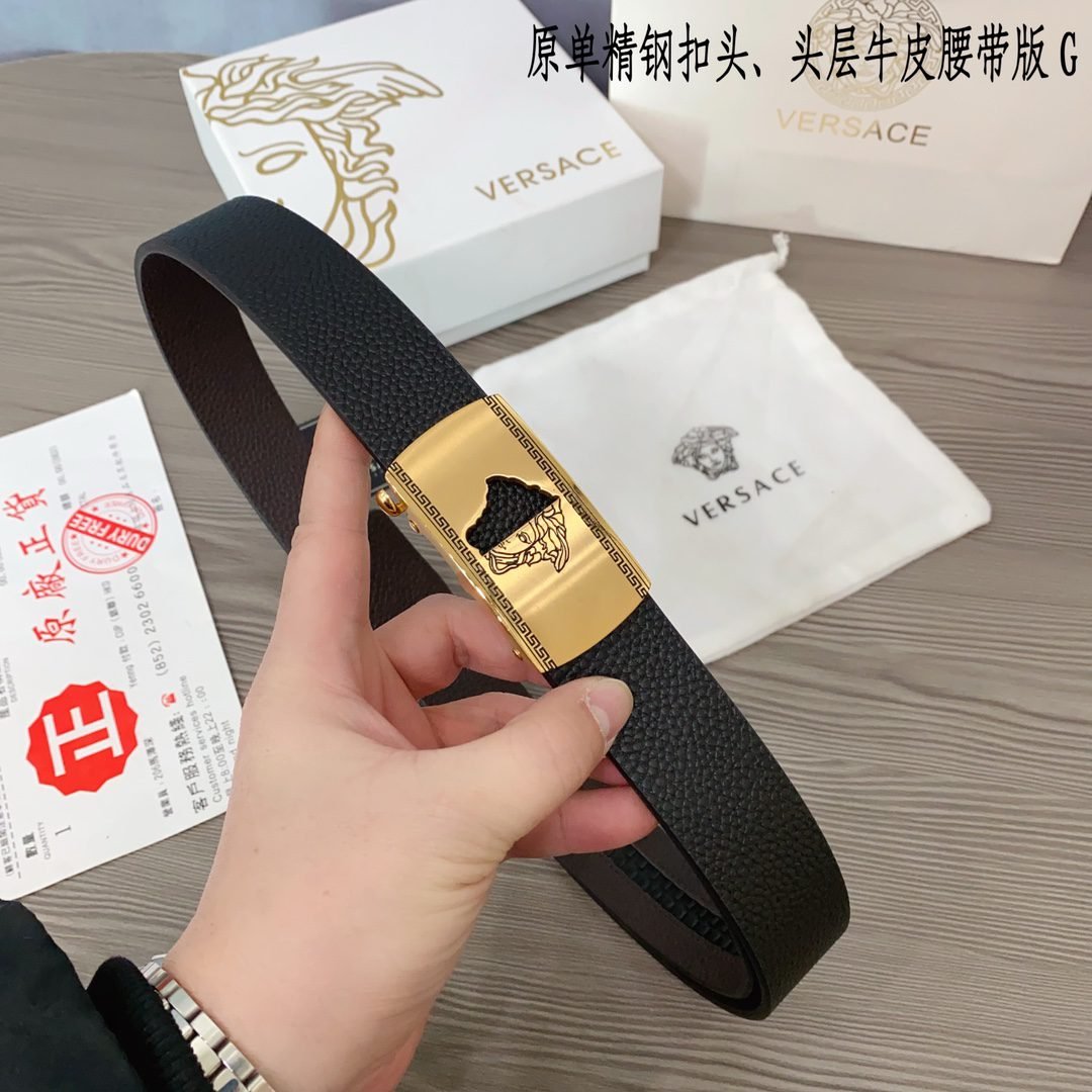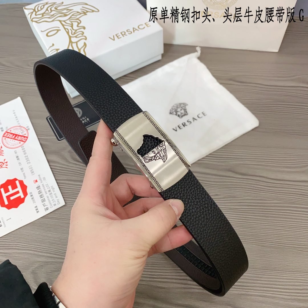 Home Belt VERSACE Belt Versace Classic Square Buckle Black Belt Simple and Elegant, Low key Luxury