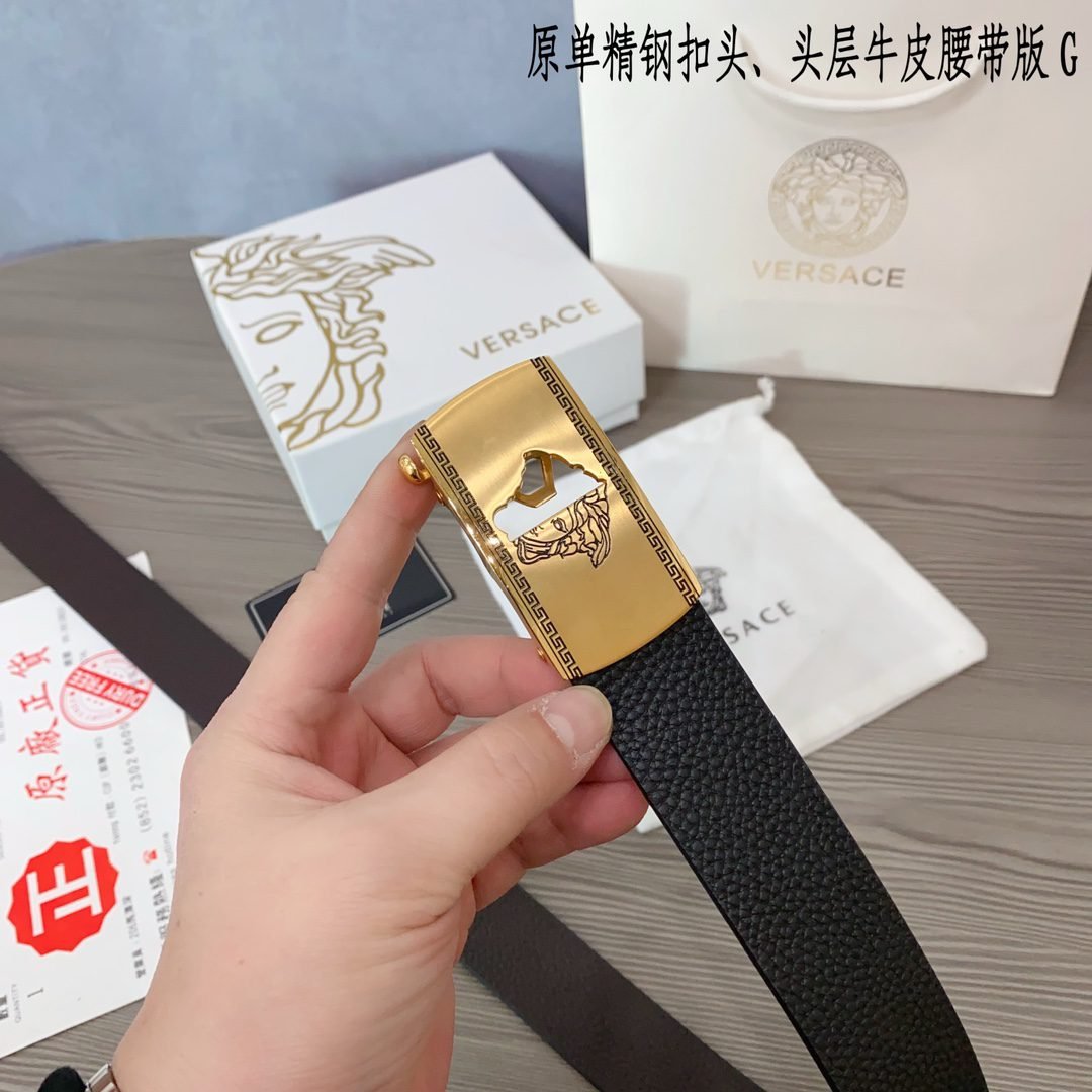 2.Classic design: The belt buckle is engraved with the “VERSACE” logo, showcasing the brand’s unique charm.