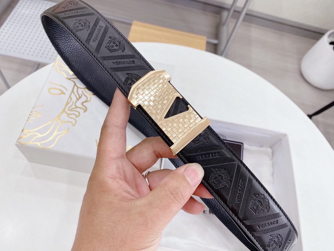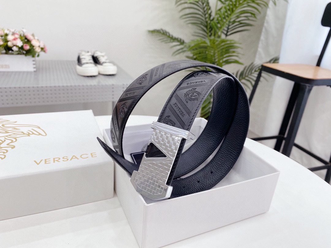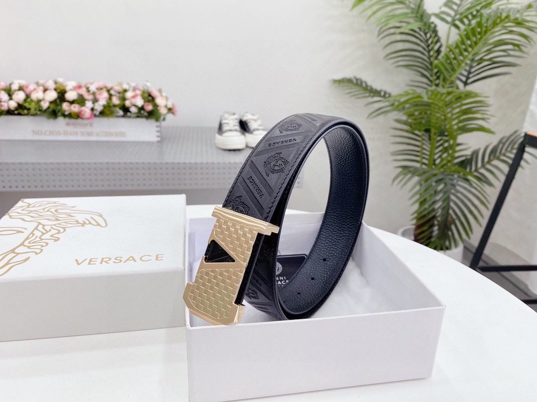 Home Belt VERSACE Belt Versace Classic Square Buckle Black Texture Belt Classic Fashion Low key Luxury