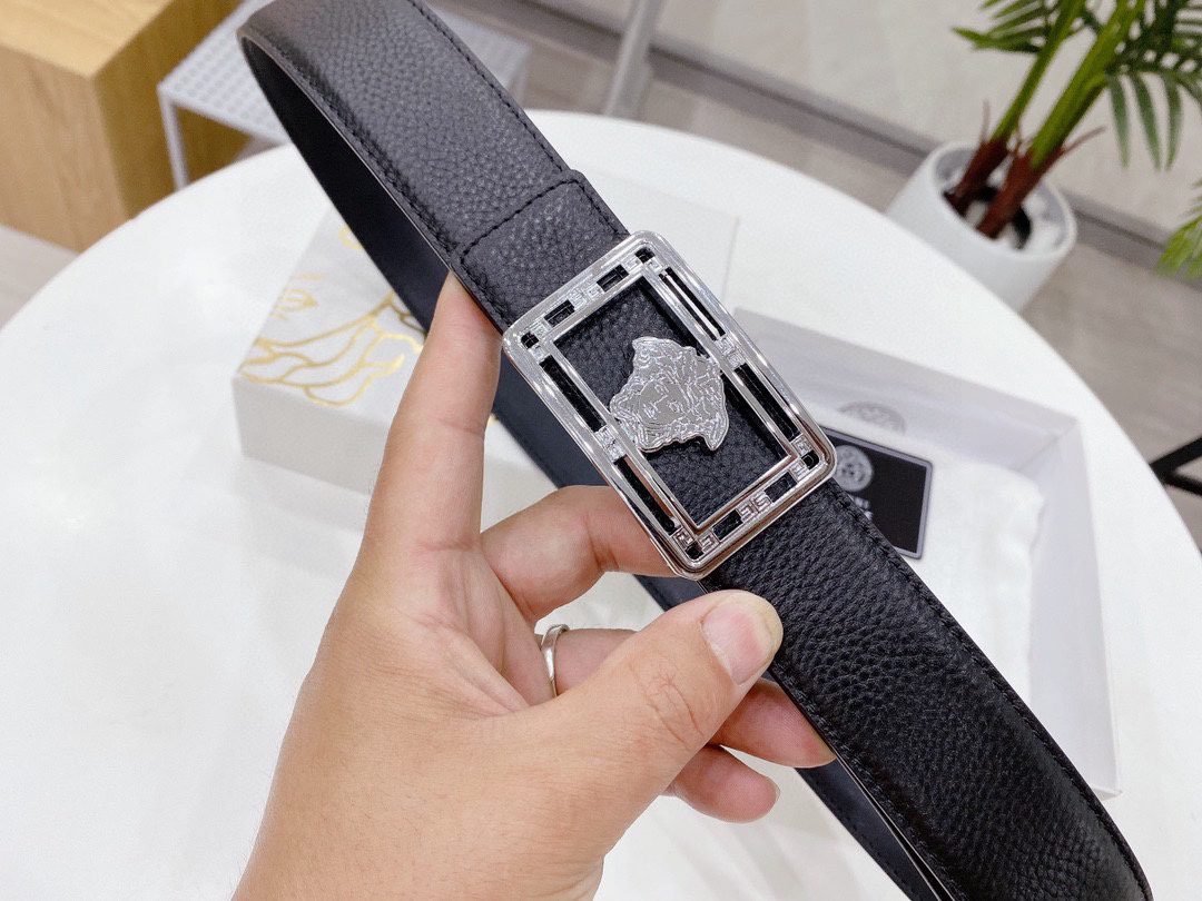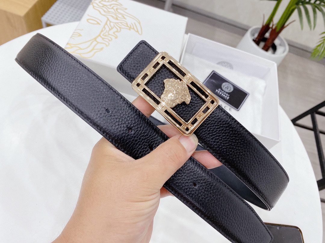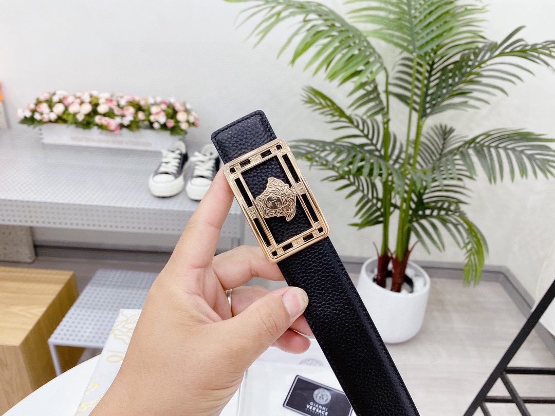 Home Belt VERSACE Belt Versace Classic Square Loop Buckle Black Belt, Simple and Elegant, Classic and Fashionable