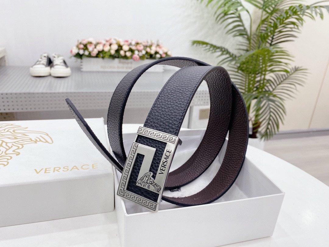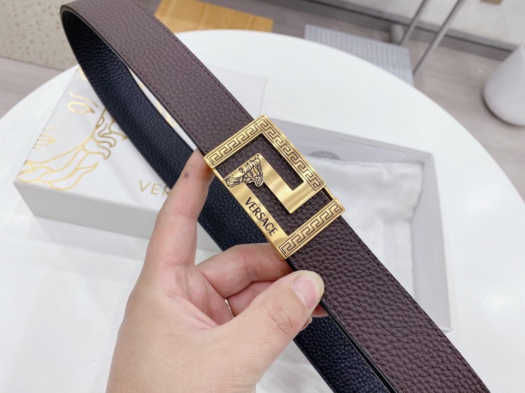 Home Belt VERSACE Belt Versace Classic Square Loop Buckle with Double Sided Usable Belt, Simple, Elegant, Noble, Luxury