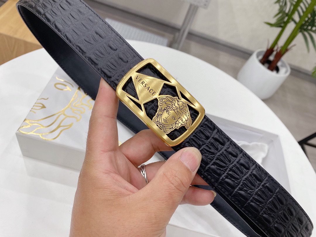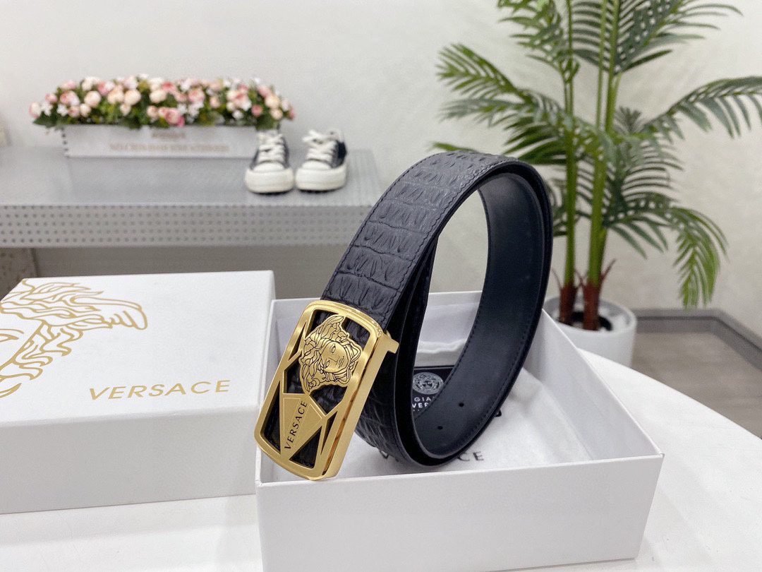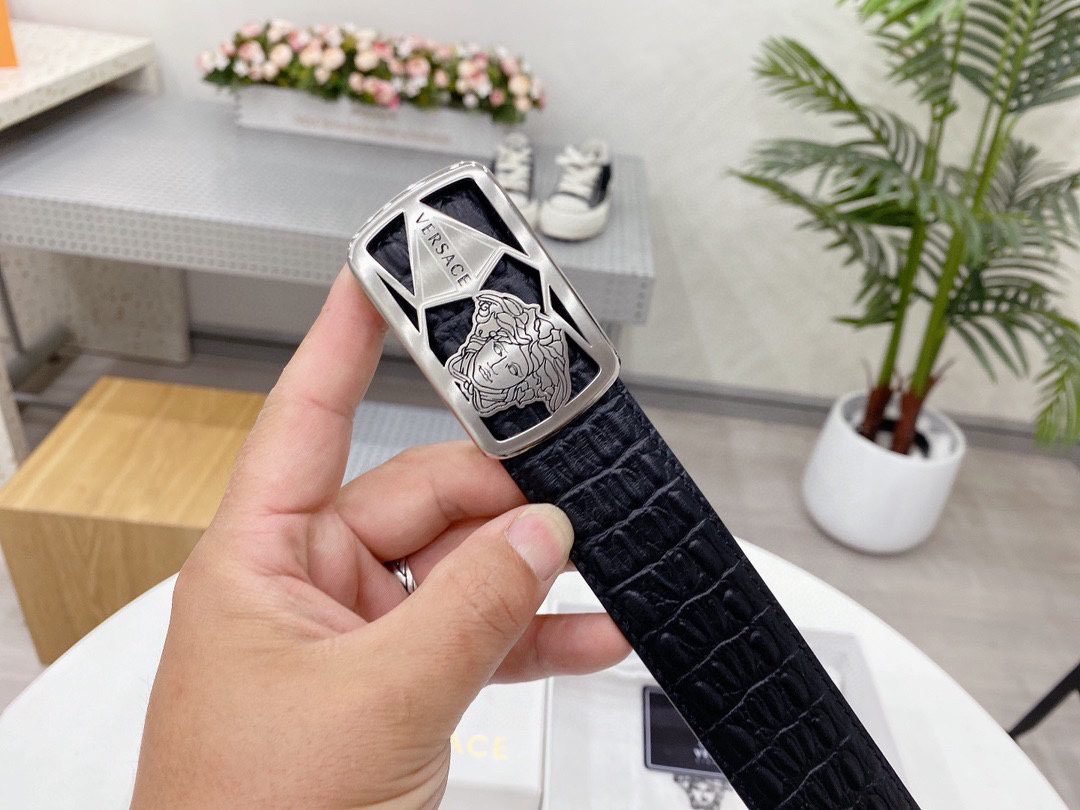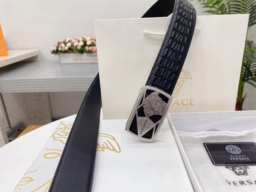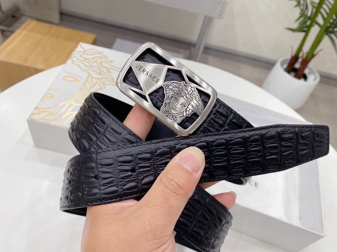 Home Belt VERSACE Belt Versace Classic Square Ring Buckle Black Crocodile Pattern Belt Classic Fashion Noble Luxury