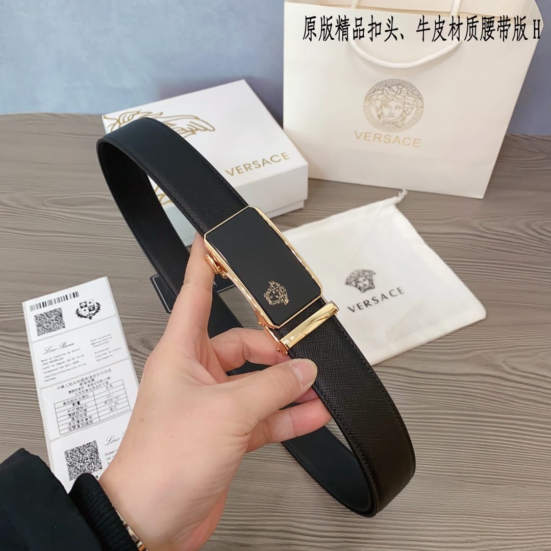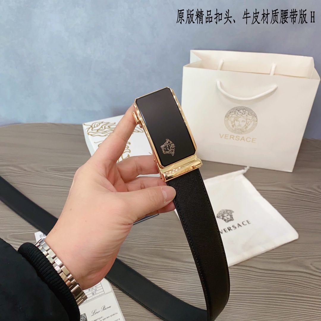 Home Belt VERSACE Belt Versace Classic Square Ring Buckle Black Plaid Belt Simple, Fashionable, Noble, and Elegant