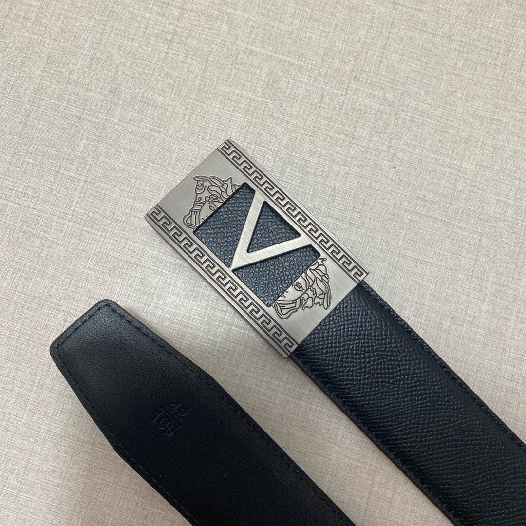 Versace Silver Square Buckle Black Texture Belt Classic Fashion Noble and Elegant