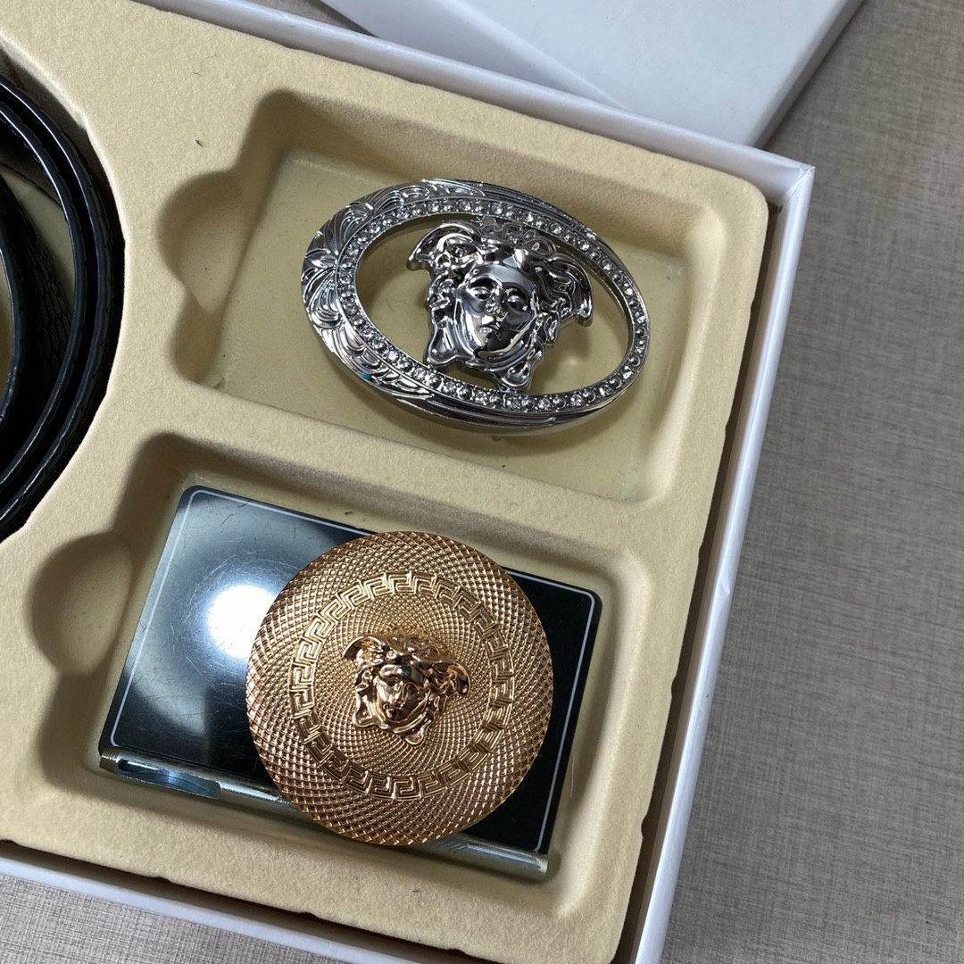 Versace Classic Round Buckle Belt Gift Box Set, with the brand’s consistent exquisite craftsmanship and excellent quality, creates a unique fashion accessory. The gift box includes a carefully selected black belt, paired with gold and silver fasteners, showcasing the brand’s ultimate pursuit of details. The belt is made of top grade leather material, with a soft and delicate touch, durable and wear-resistant, while also combining fashion and practicality.