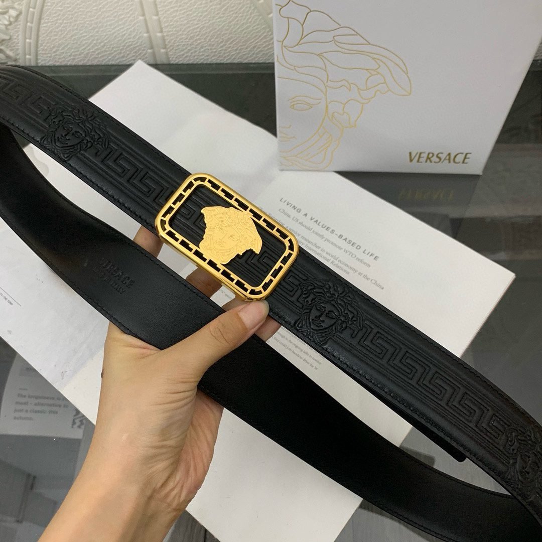 Home Belt VERSACE Belt Versace gold square buckle with black texture belt, simple and elegant, low-key and luxurious