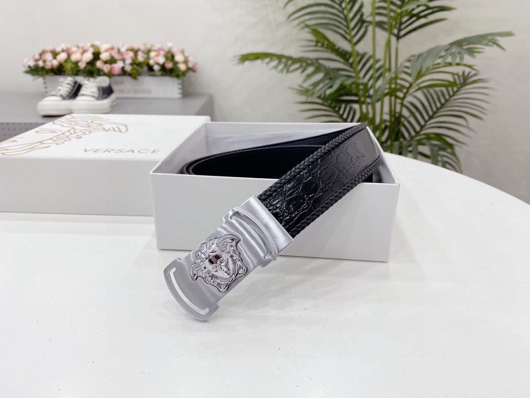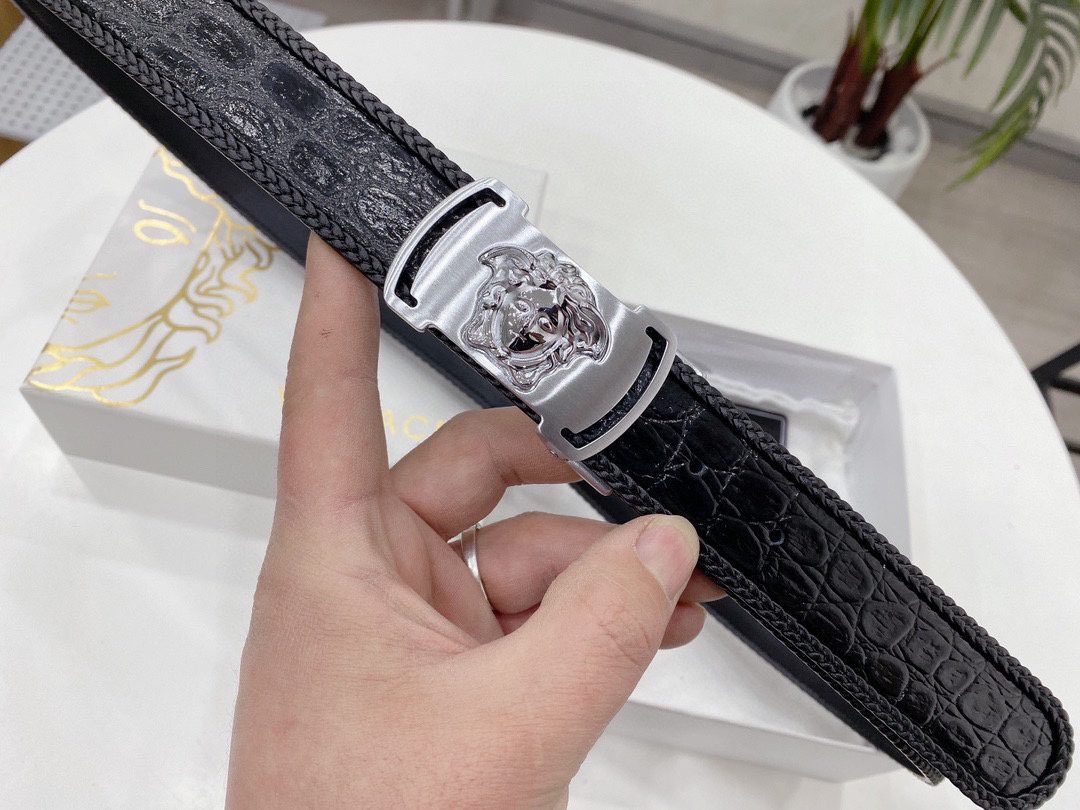 Versace Silver Square Ring Buckle Black Crocodile Pattern Belt Simple, Fashionable, Noble, Elegant