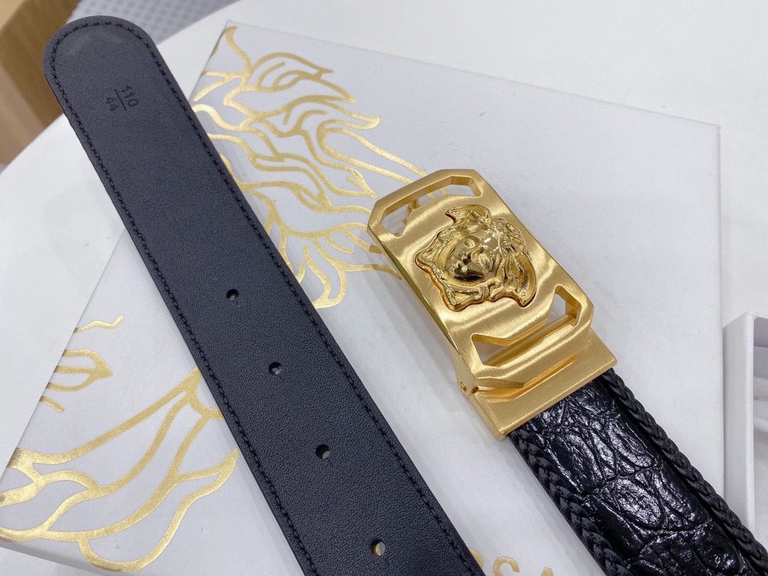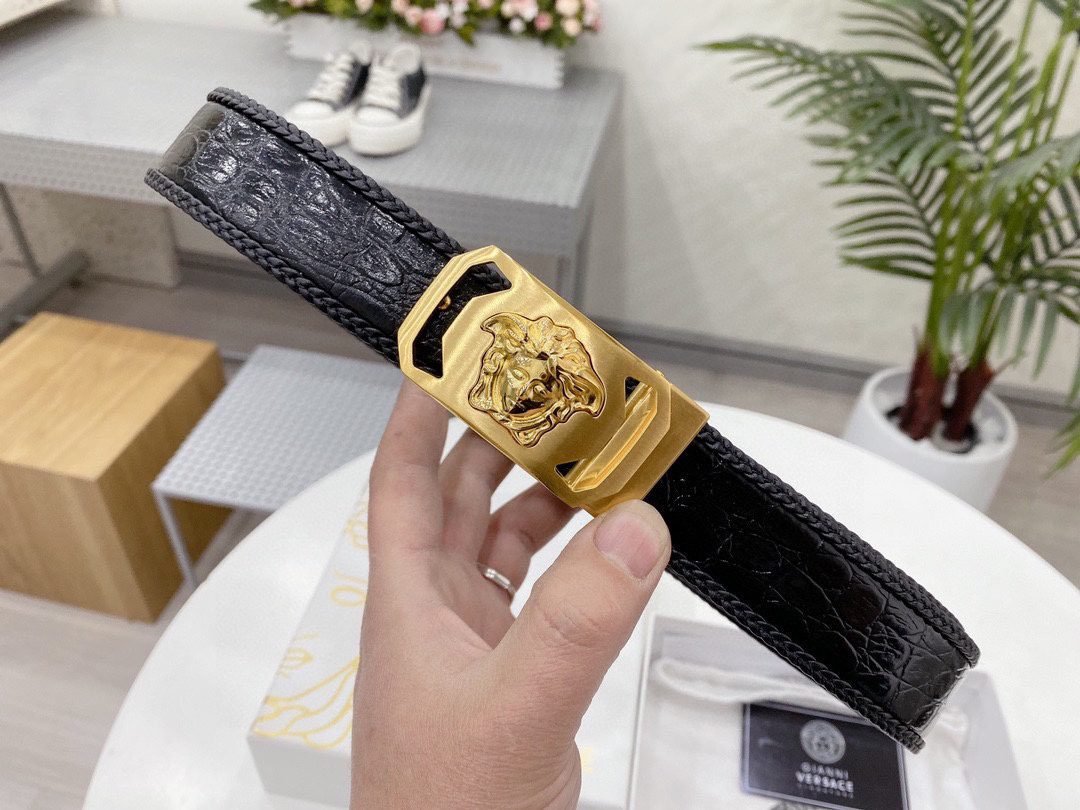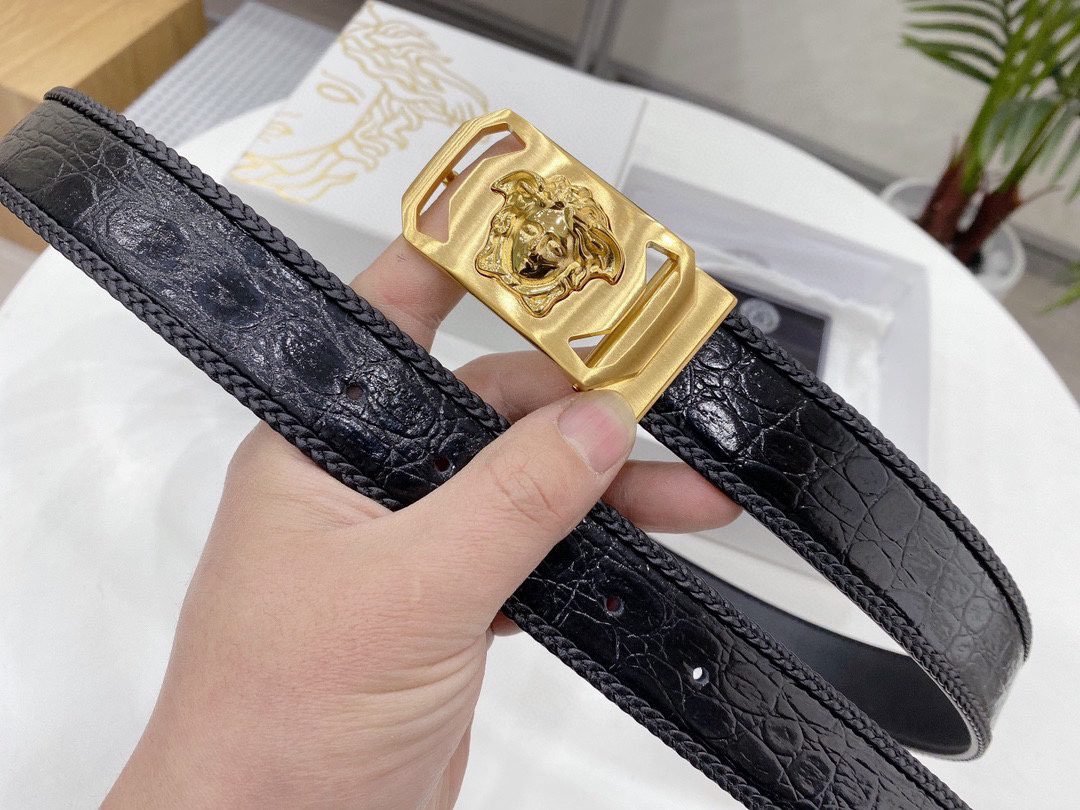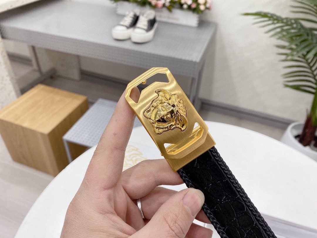 Home Belt VERSACE Belt Versace Gold Square Ring Buckle Black Crocodile Pattern Belt Simple, Fashionable, Noble, and Elegant
