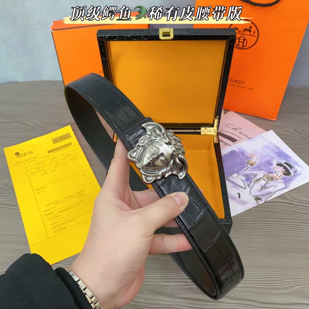 Home Belt VERSACE Belt Versace Medusa embossed buckle with black crocodile pattern belt, simple, atmospheric, low-key, luxurious