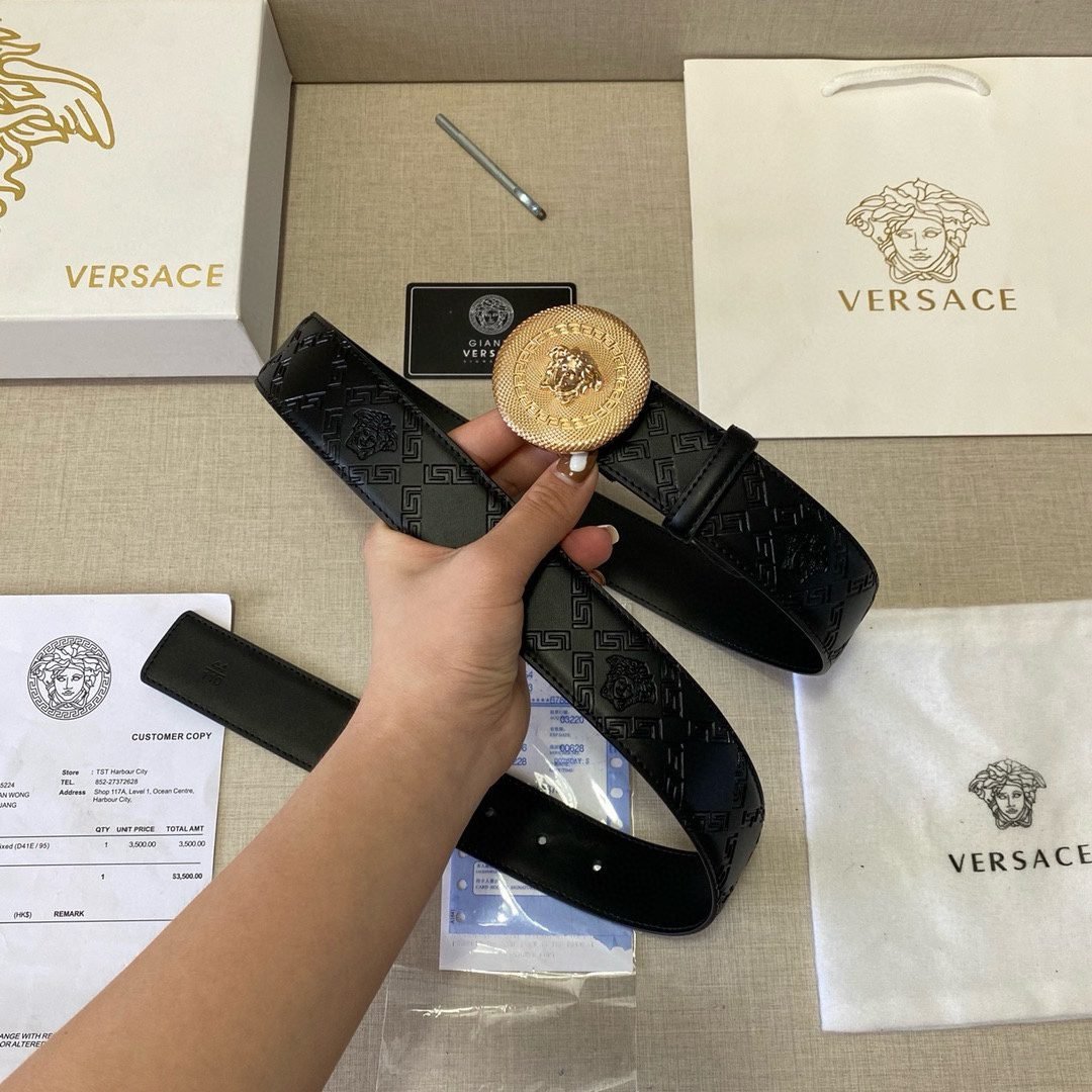 2.Classic design: The belt buckle is engraved with the “VERSACE” logo, showcasing the brand’s unique charm.