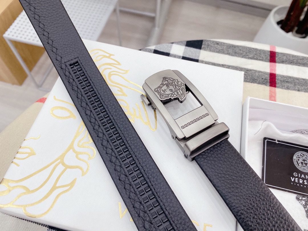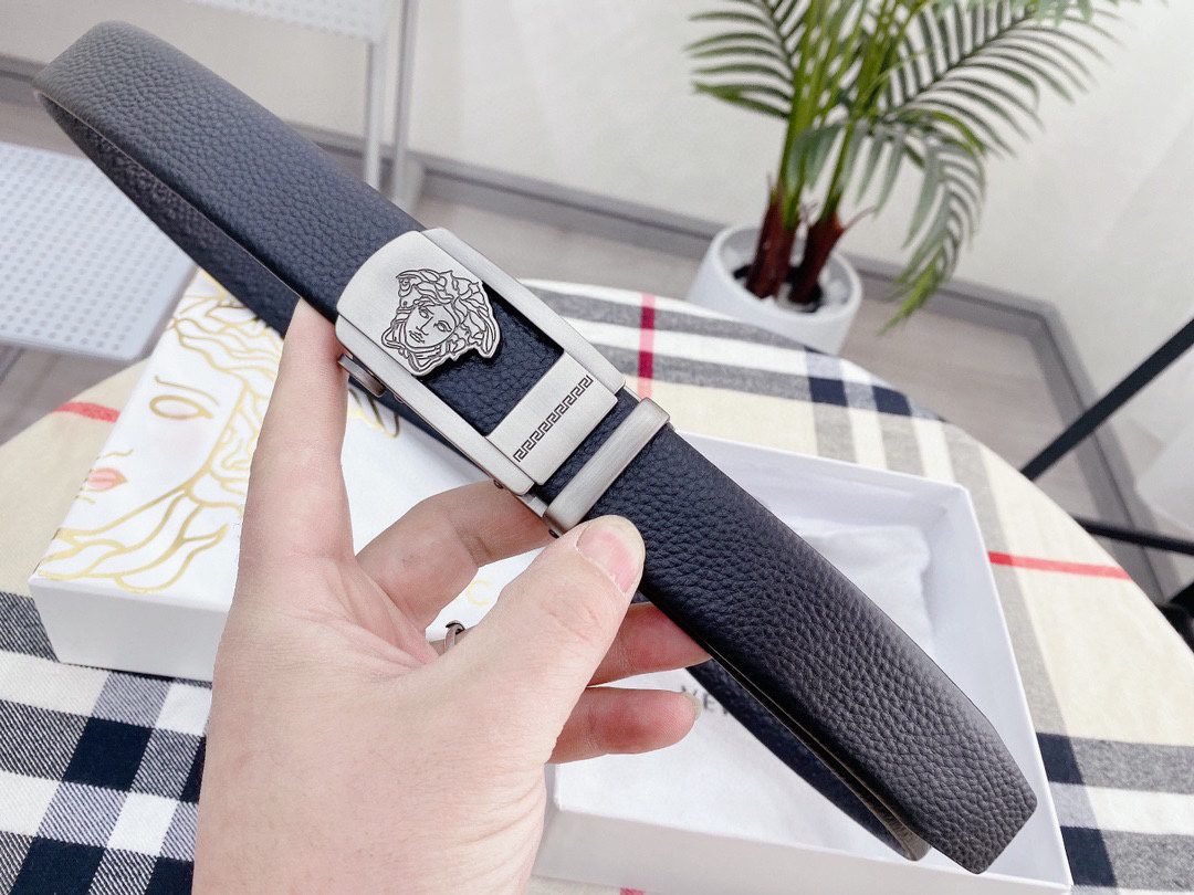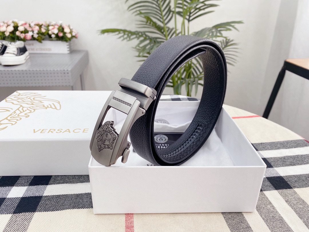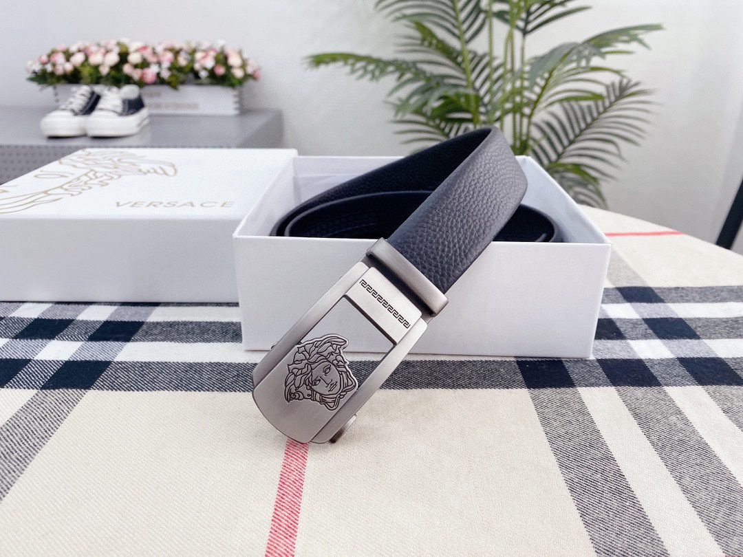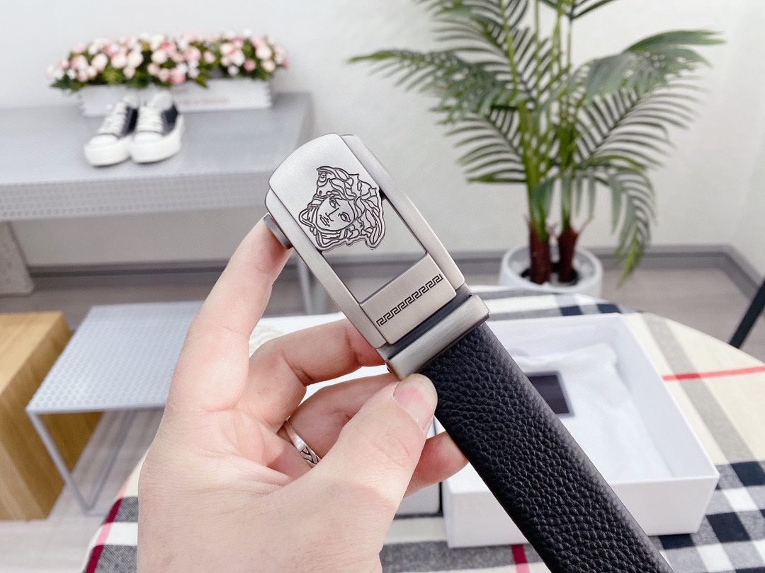 Home Belt VERSACE Belt Versace Silver Square Buckle Black Belt Classic Fashion Noble Luxury