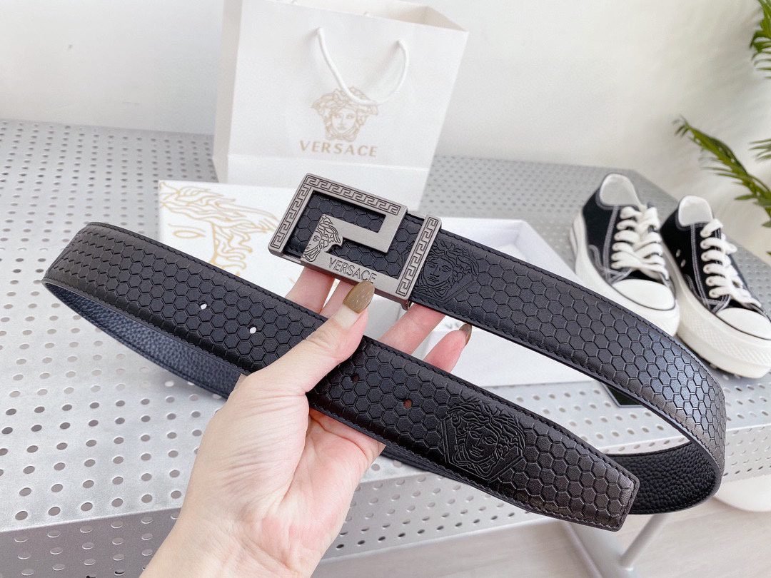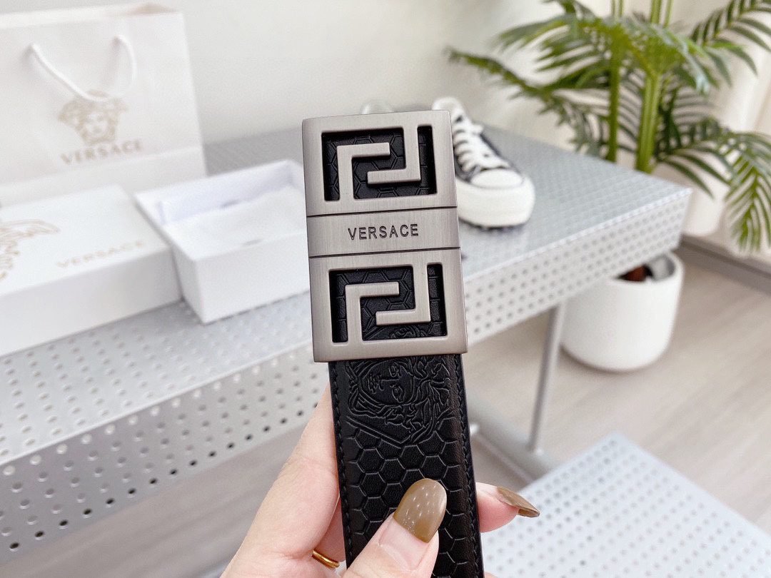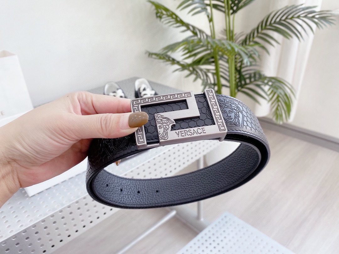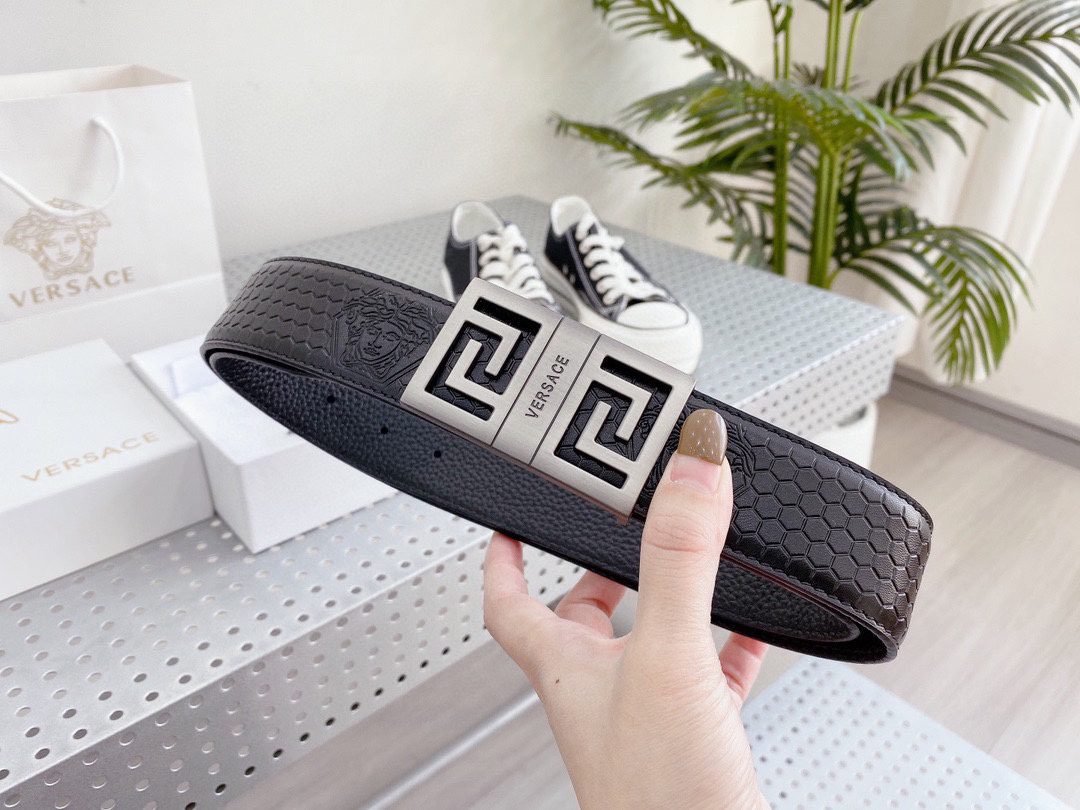 Home Belt VERSACE Belt Versace silver square buckle with black plaid belt, simple and elegant, classic and fashionable