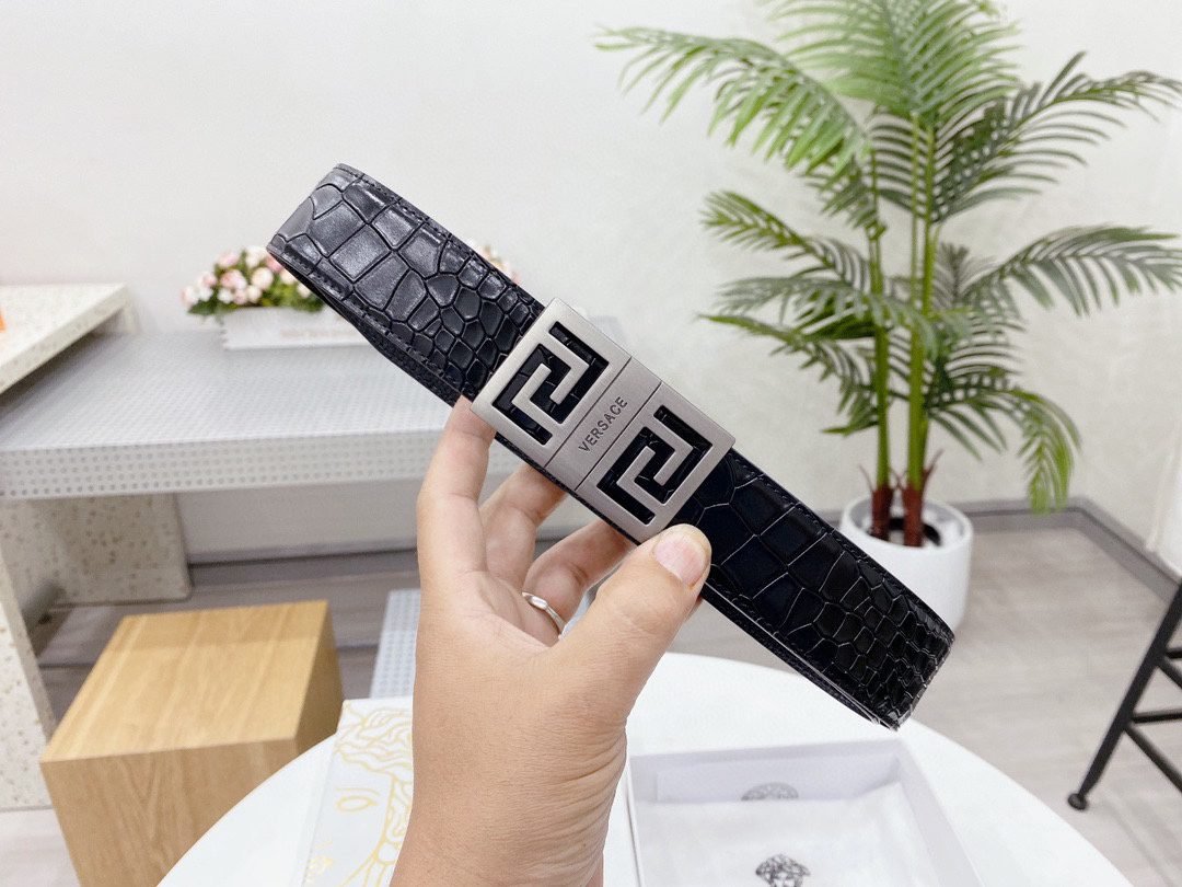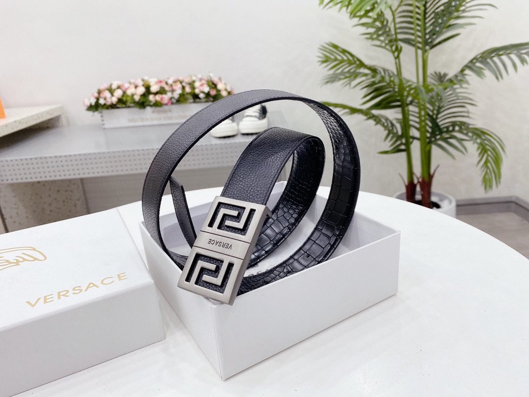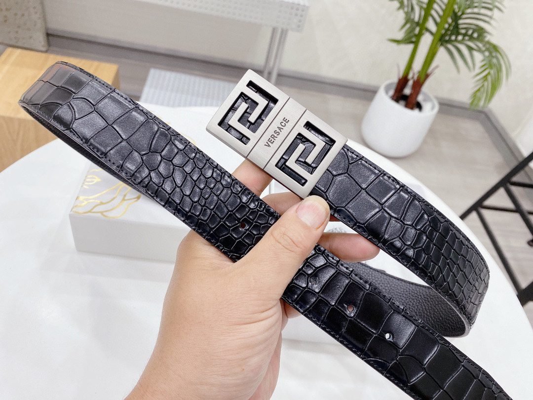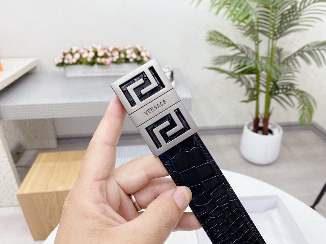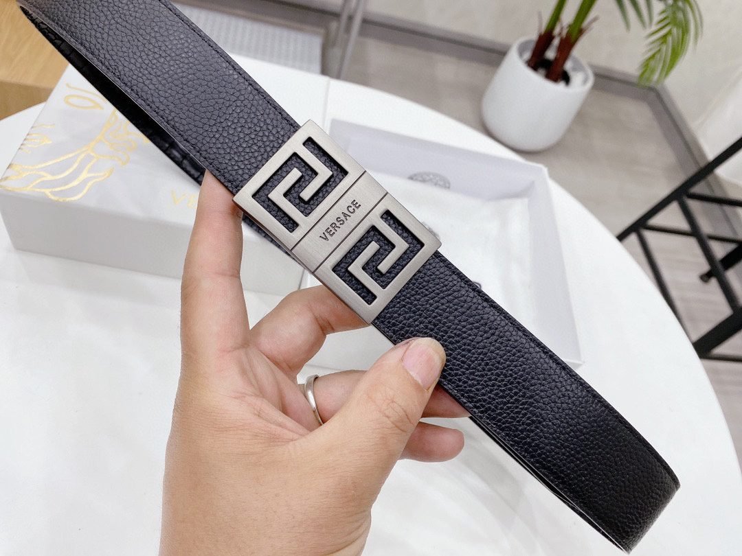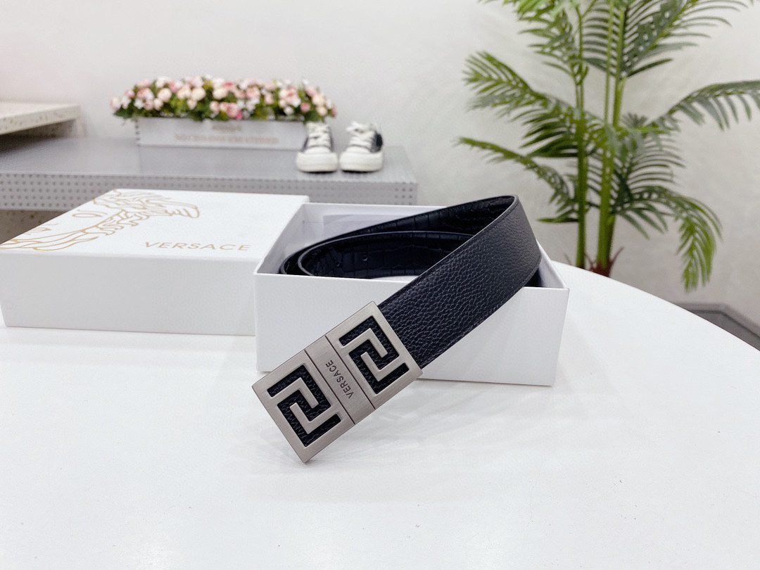 Home Belt VERSACE Belt Versace silver square buckle with black texture belt, simple, atmospheric, exquisite and elegant