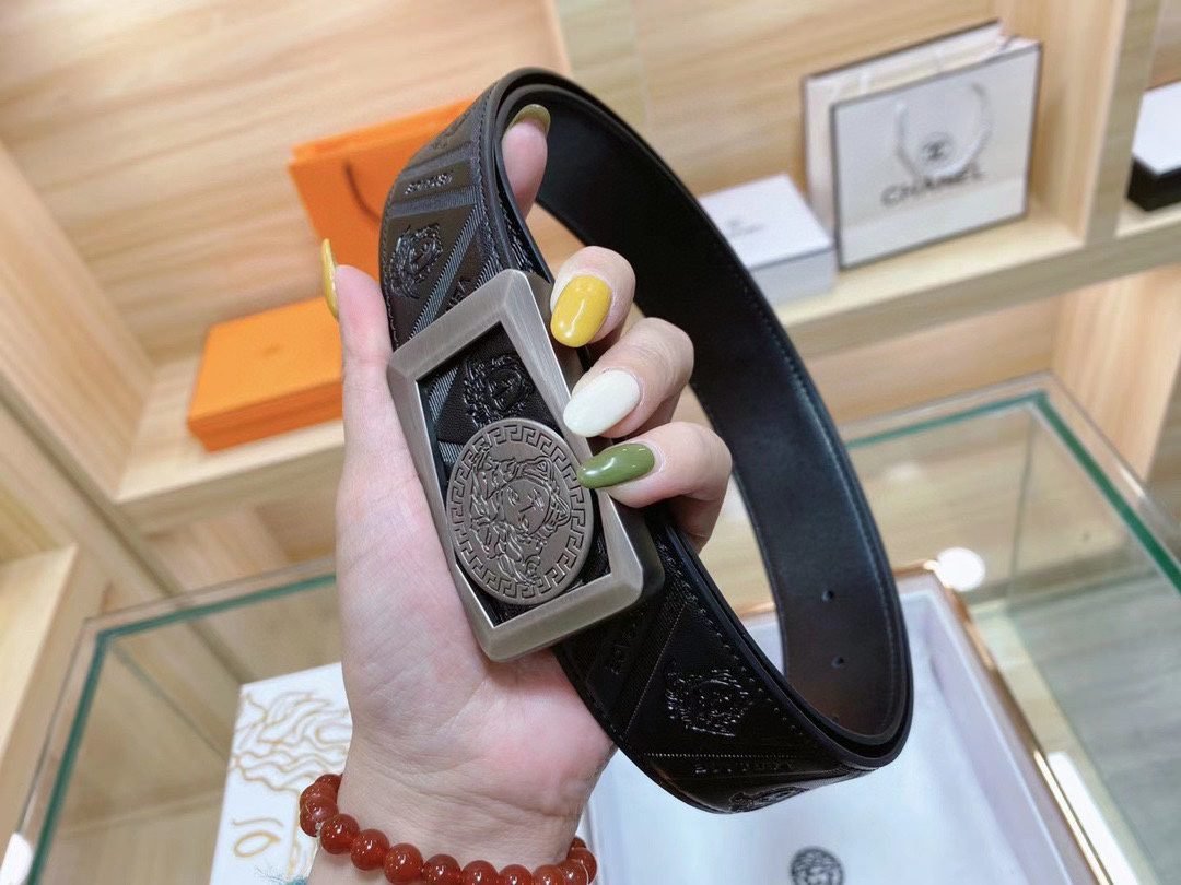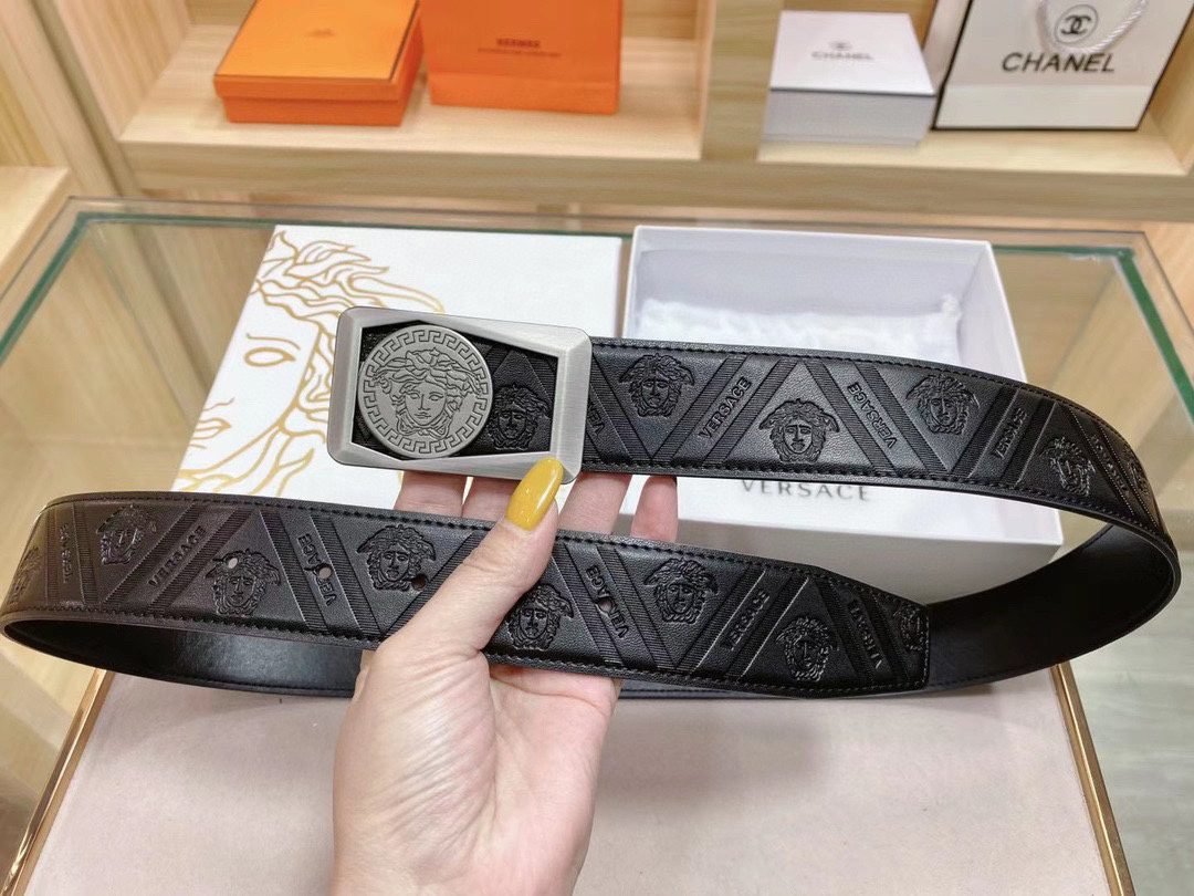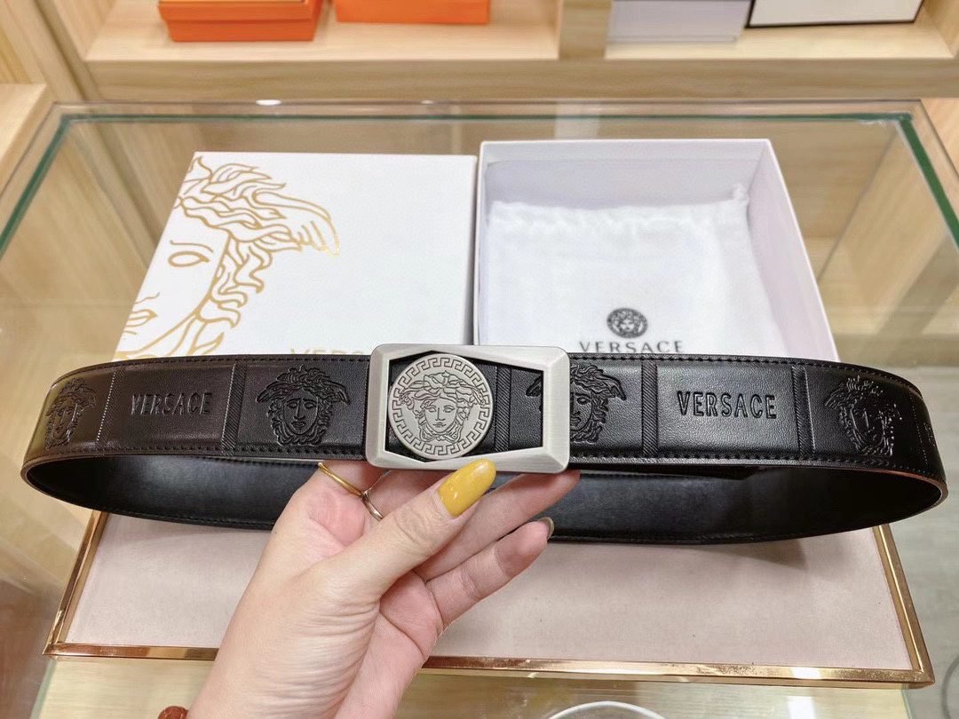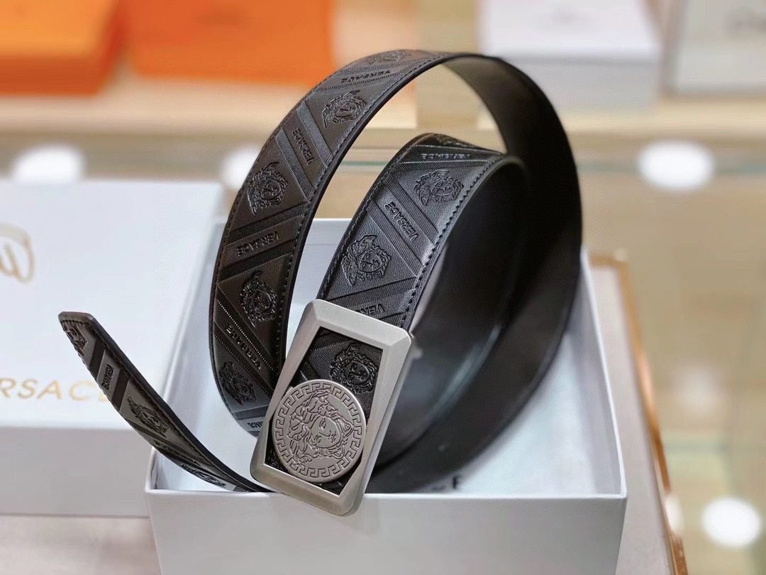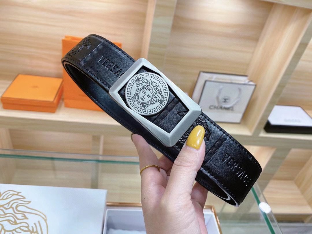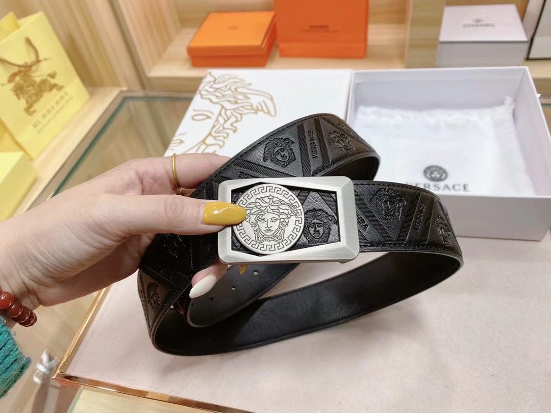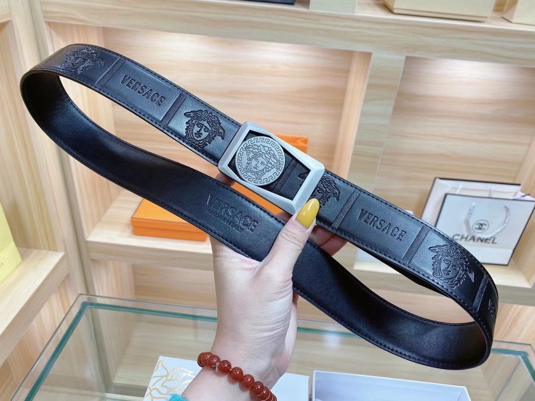 Home Belt VERSACE Belt Versace silver square buckle with black texture belt, simple, fashionable, noble, and elegant