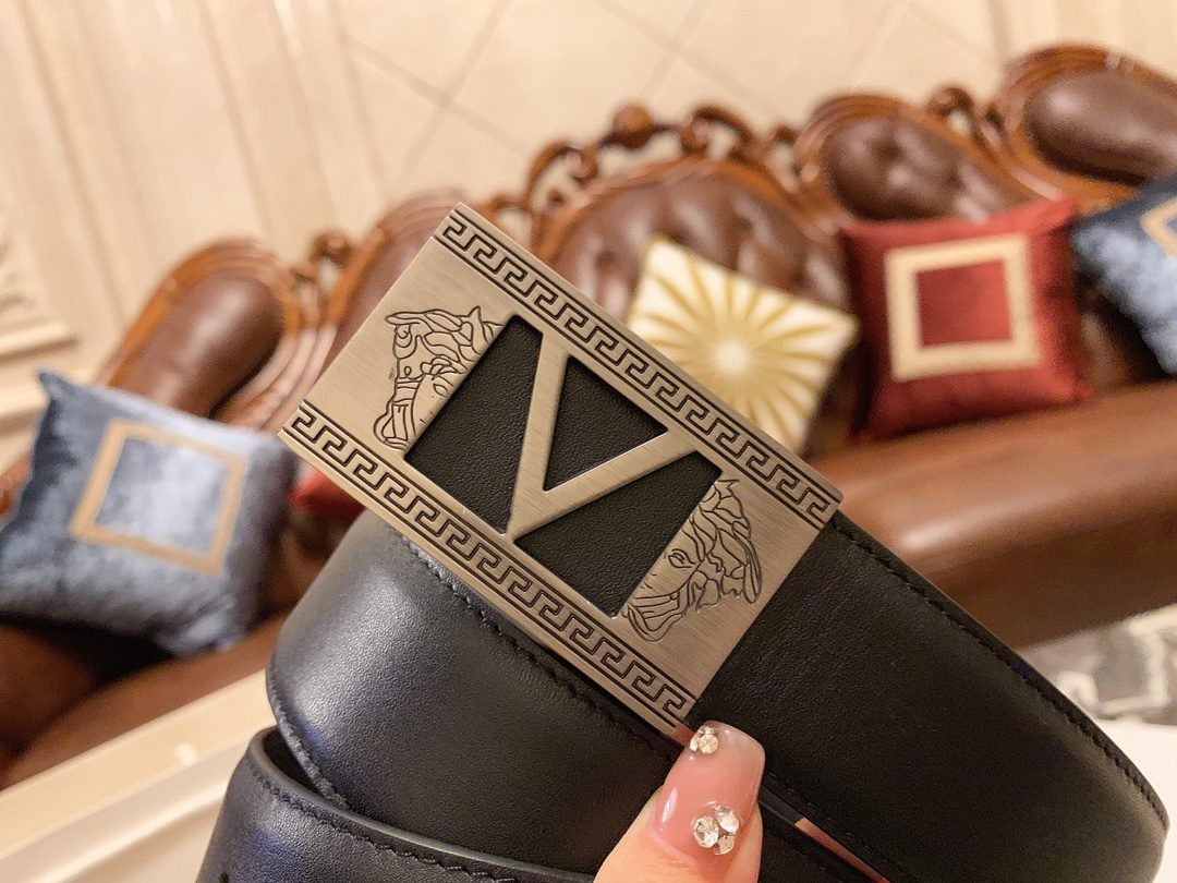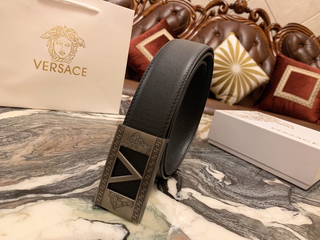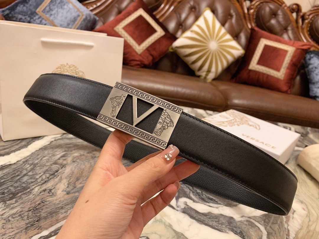 Home Belt VERSACE Belt Versace silver square buckle with double-sided black belt, simple, fashionable, noble, and elegant