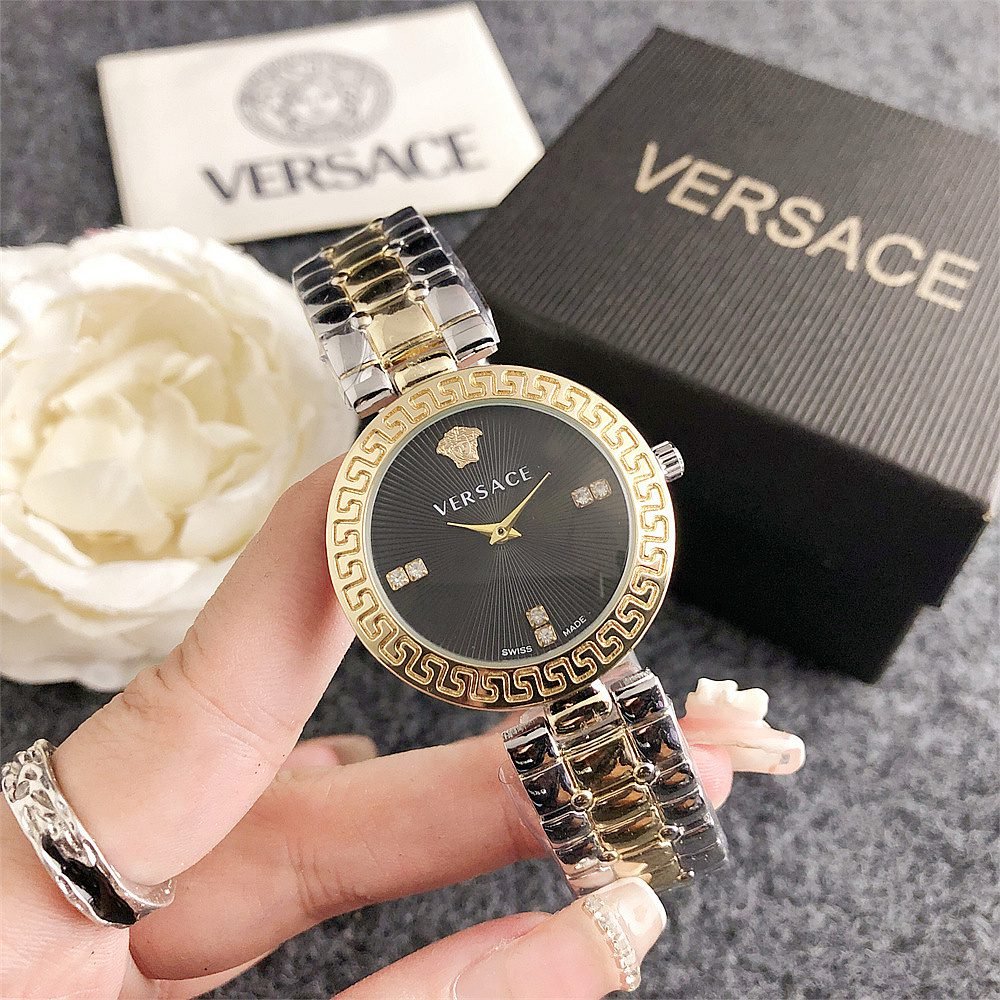 Decoration: The top ring of the watch case is decorated with Greek ripple patterns and Versace logo, showcasing the brand’s unique style.