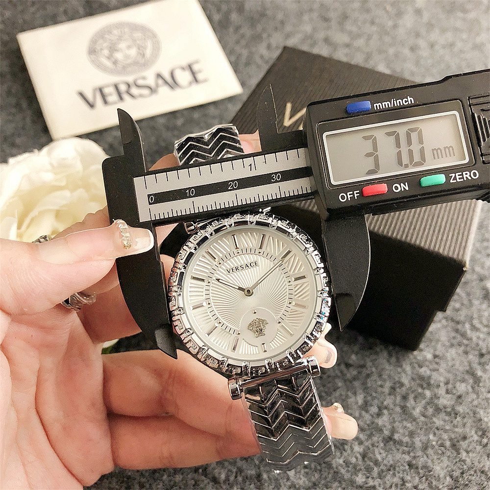 Decoration: The top ring of the watch case is decorated with Greek ripple patterns and Versace logo, showcasing the brand’s unique style.