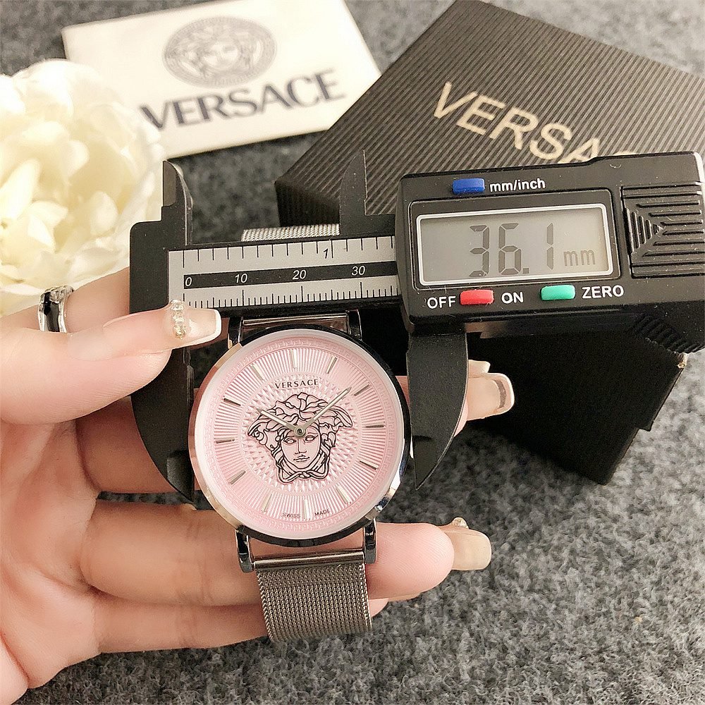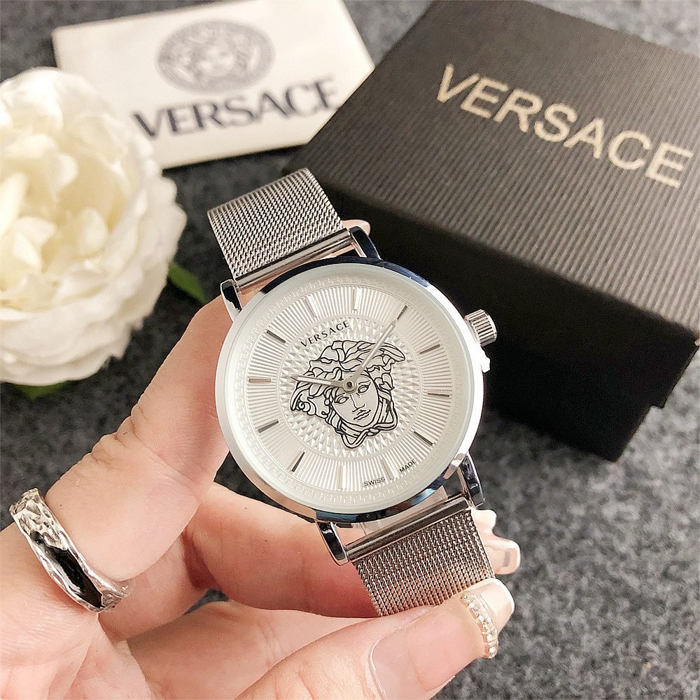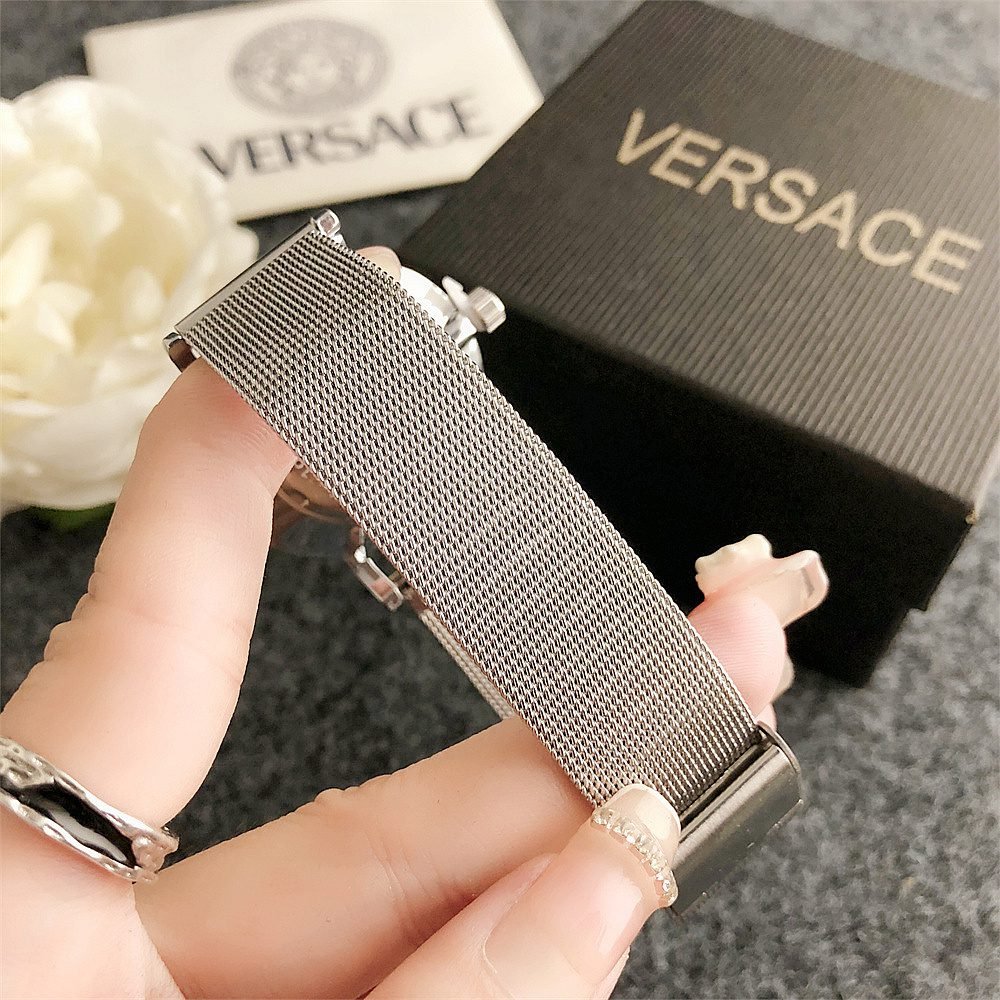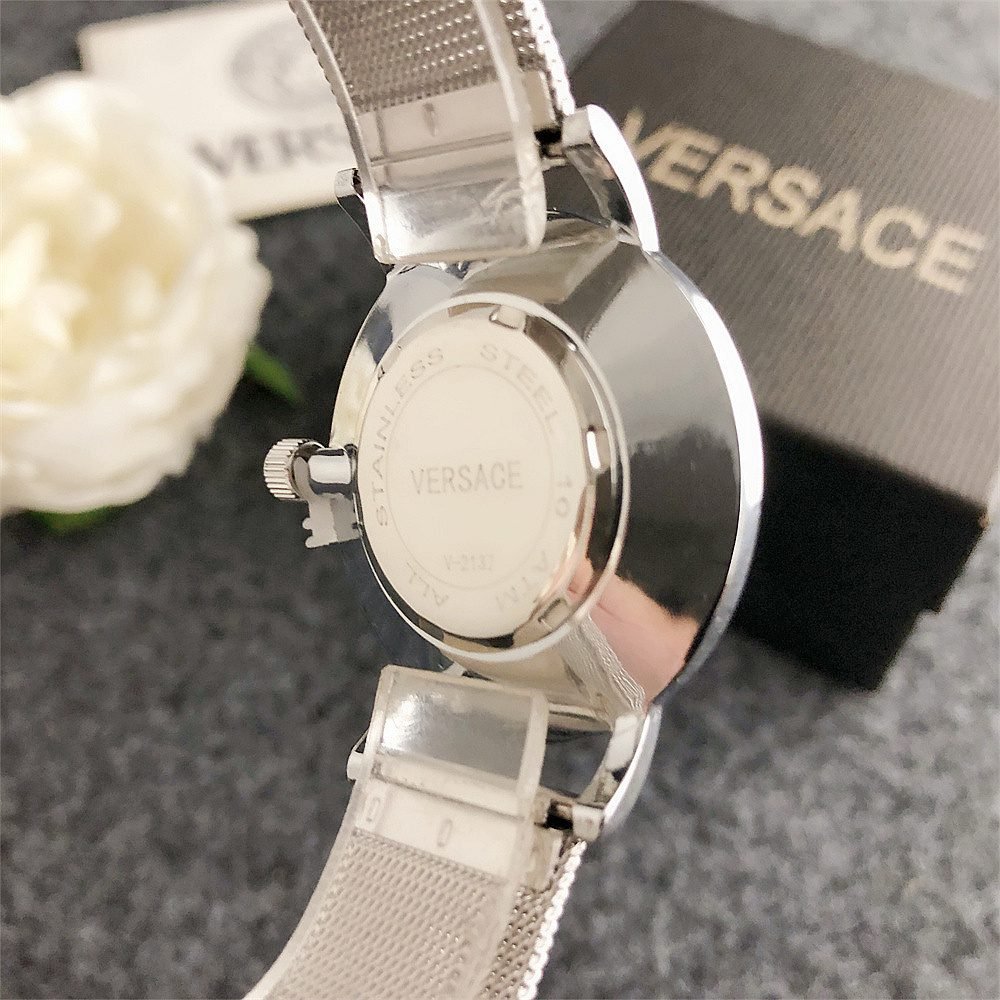 Decoration: The top ring of the watch case is decorated with Greek ripple patterns and Versace logo, showcasing the brand’s unique style.