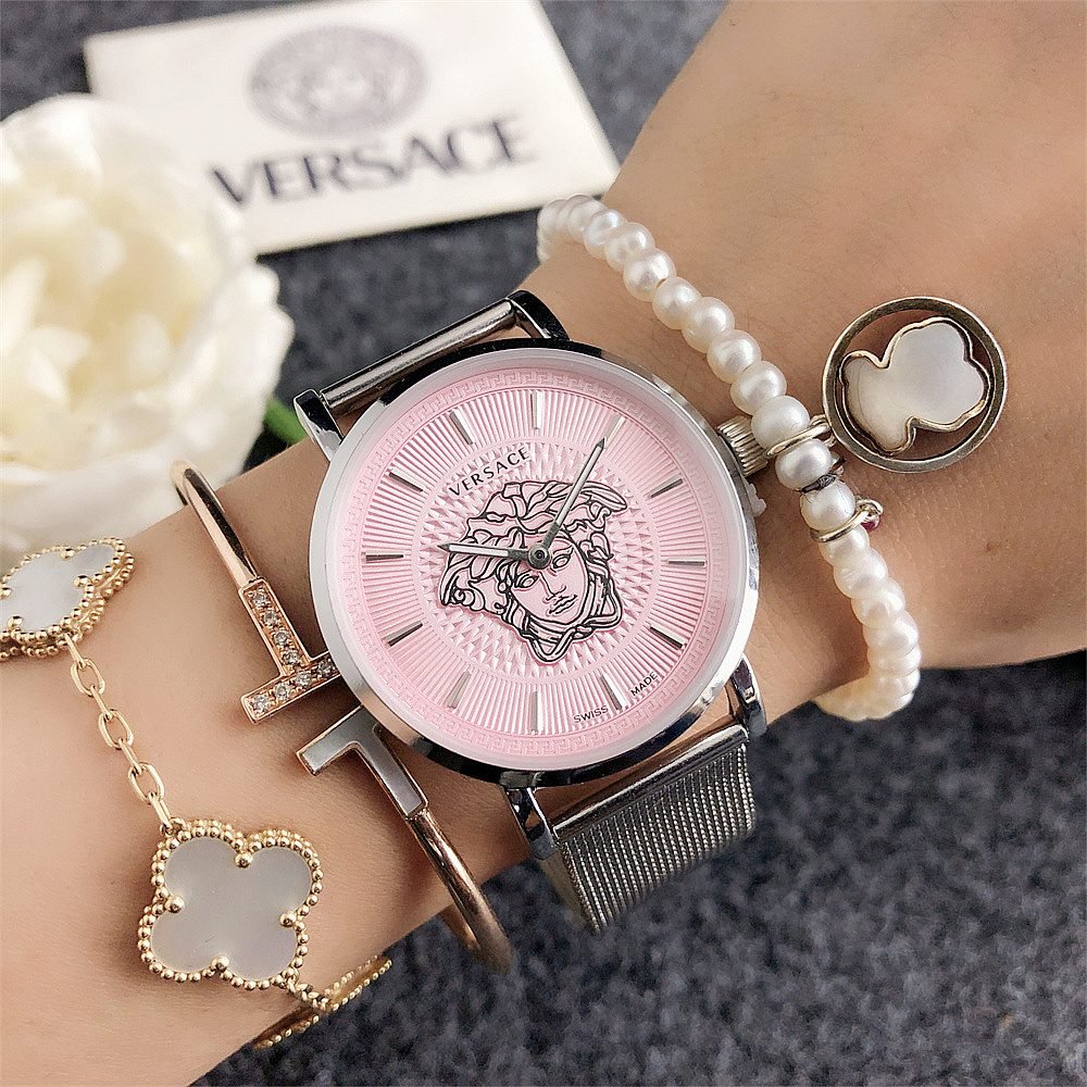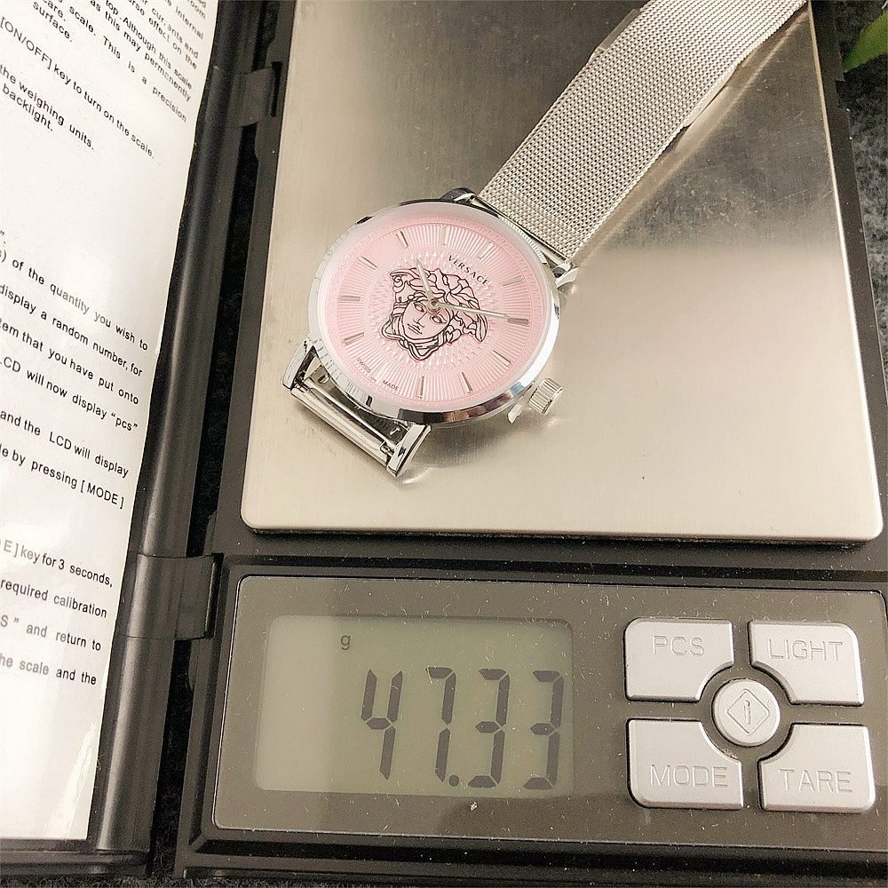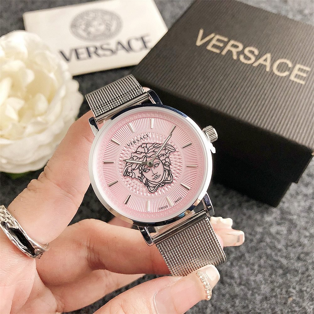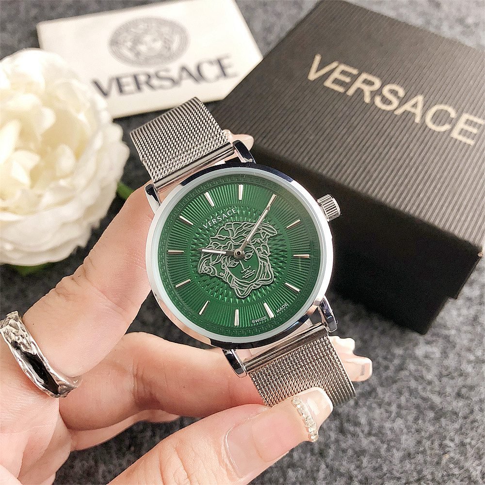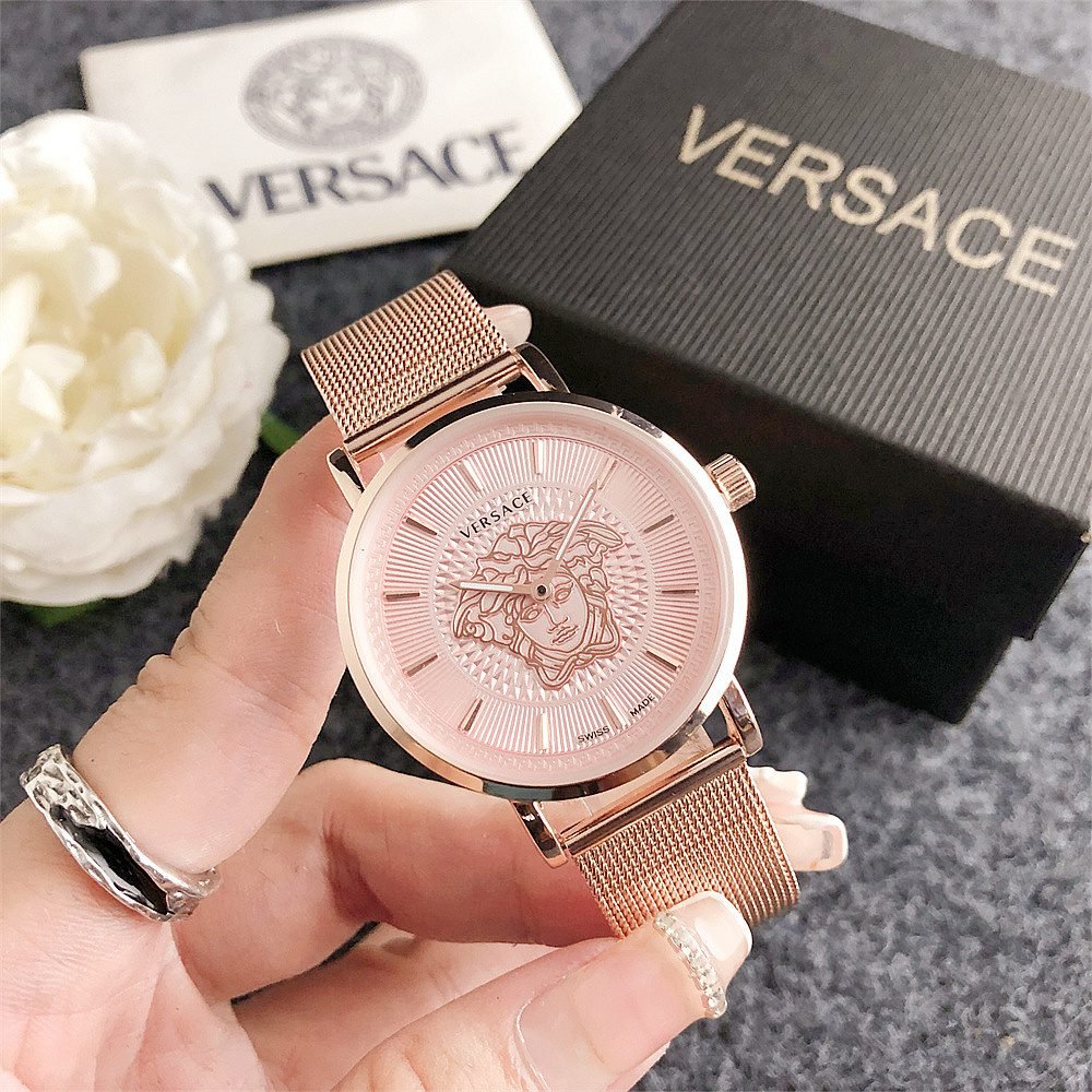Decoration: The top ring of the watch case is decorated with Greek ripple patterns and Versace logo, showcasing the brand’s unique style.