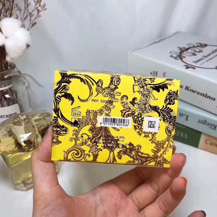 The packaging design of perfume is very unique, with dazzling and gorgeous yellow as the main color. The bottle body is as transparent and shining as a yellow diamond. It combines Baroque style ornaments and decorative frames, making it both luxurious and exquisite.