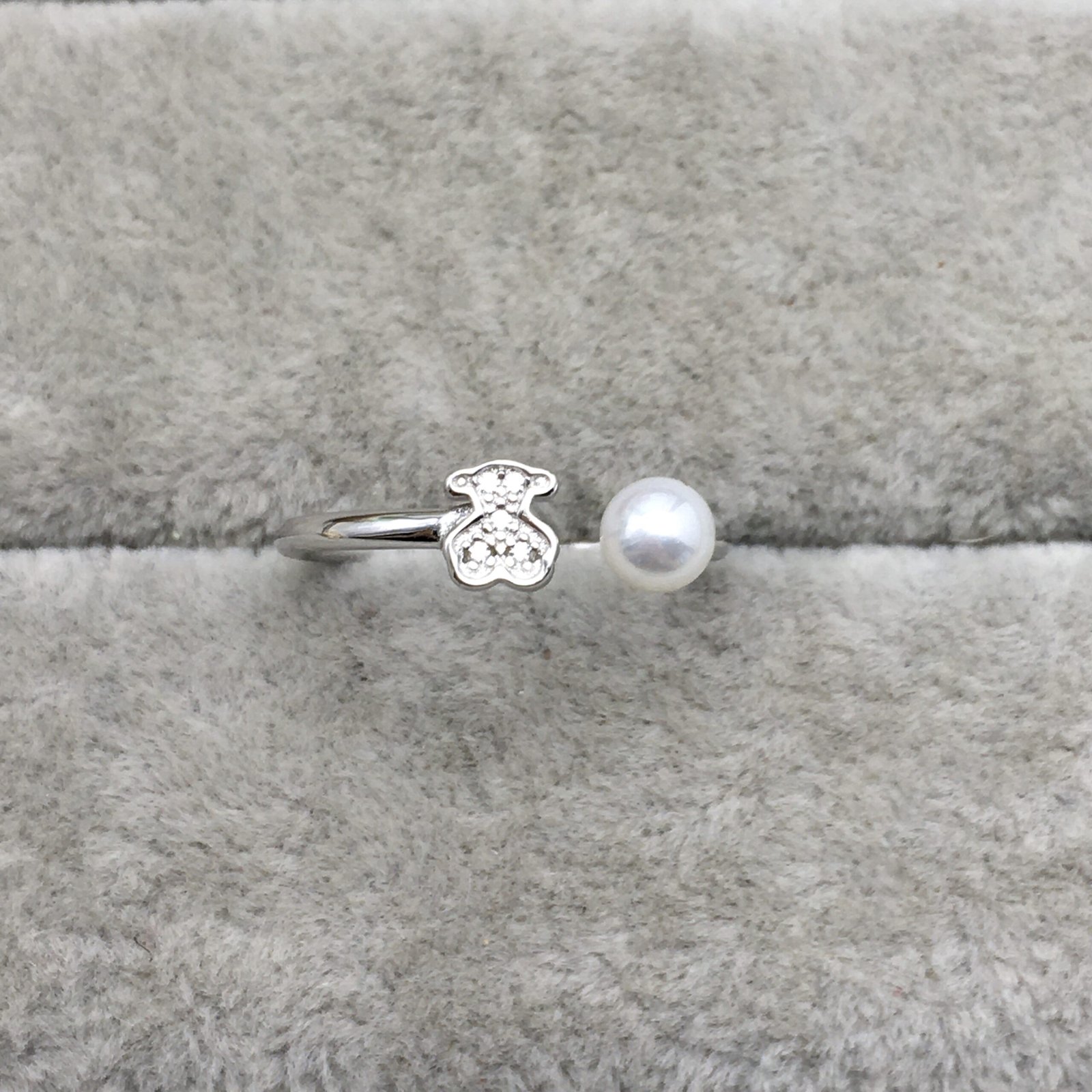 White Gold Puppies Ring with Diamond and Pearl