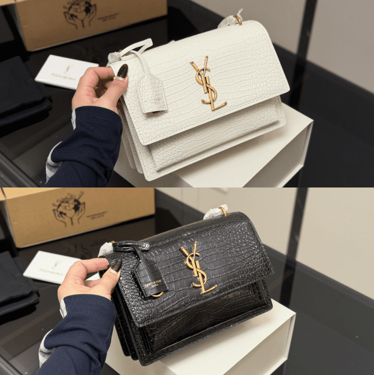 This YSL croc-embossed shoulder bag features the brand’s iconic YSL logo, crafted from premium croc-embossed leather with a structured silhouette of 22×16cm. Embodying YSL’s legacy of opulent sophistication and bold design, the bag is available in timeless hues like white and black, with a textured finish that exudes instant luxury. Merging classic elegance with a modern, statement-making aesthetic, it’s perfect for those who appreciate iconic branding, meticulous craftsmanship, and a piece that elevates any ensemble—whether for a refined daytime look or a glamorous evening outing—with undeniable richness and style.