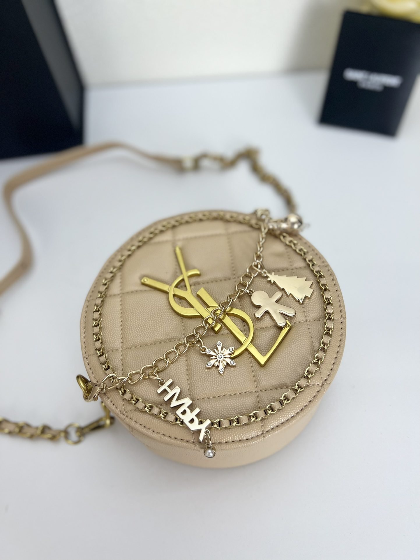 Home BAGS YSL-BAG YSL round bun bag with chain strap apricot size: 17cm